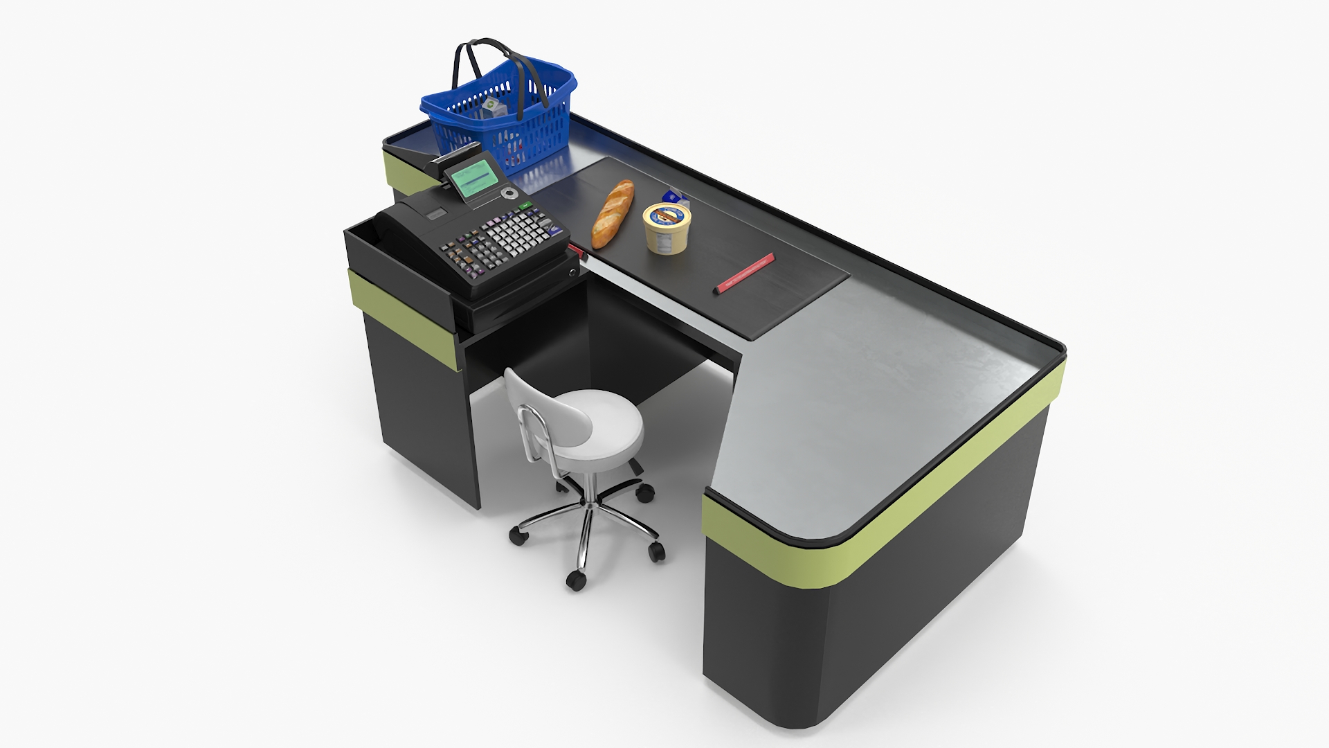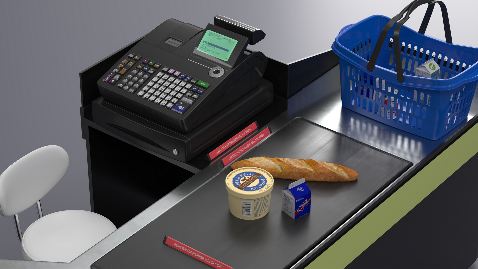 Retail Checkout with Groceries and Divider Bar is a high quality, photo real 3d model that will enhance detail and realism to any of your rendering projects. The model has a fully textured, detailed design that allows for close-up renders, and was originally modeled in 3ds Max 2020 and rendered with V-Ray. Renders have no postprocessing!