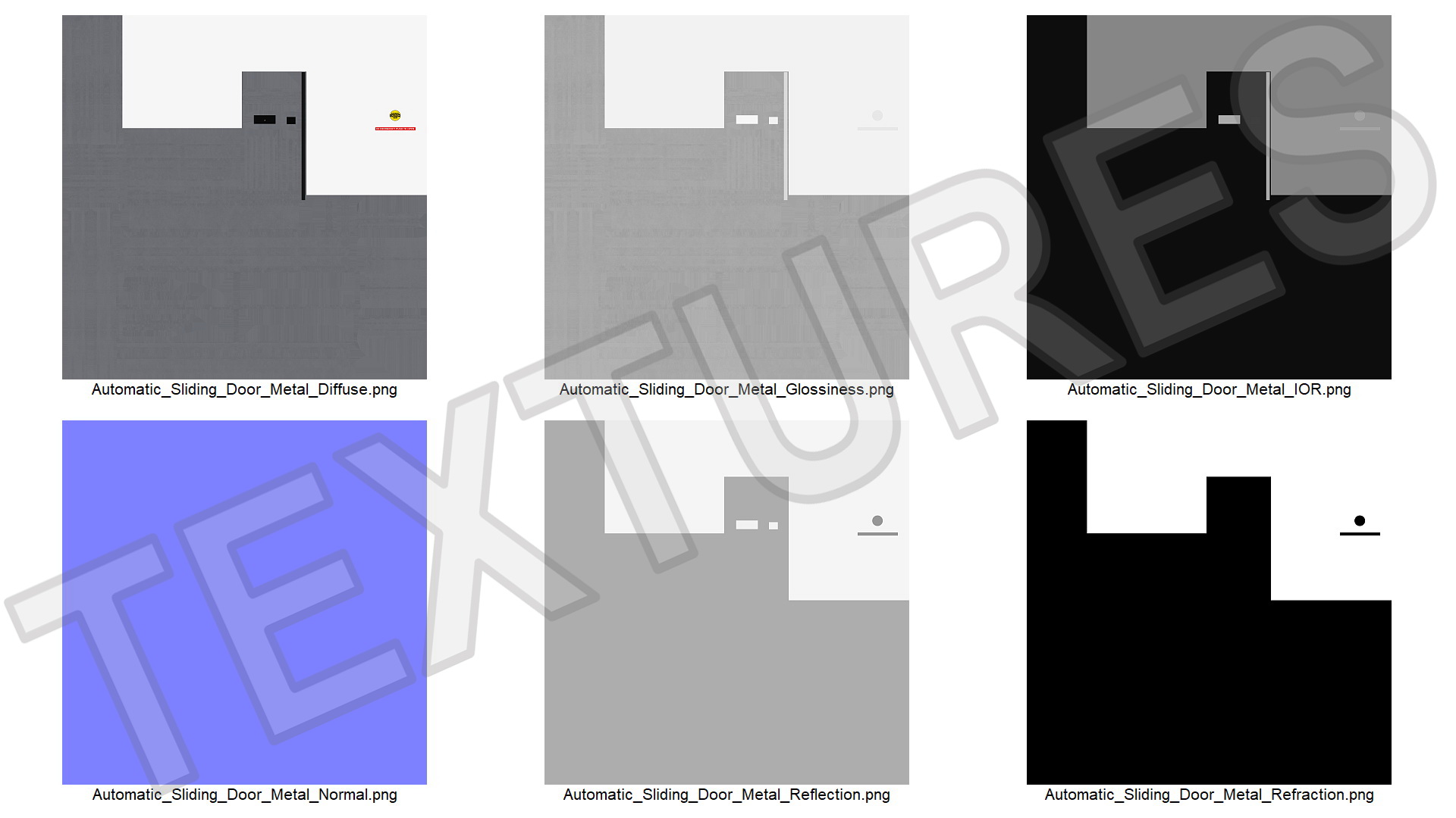 All textures and materials are included and mapped. (All colors can be easily modified.)
