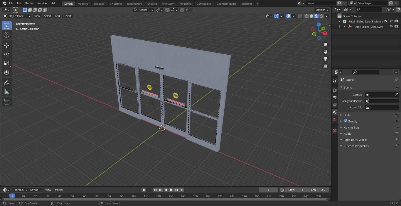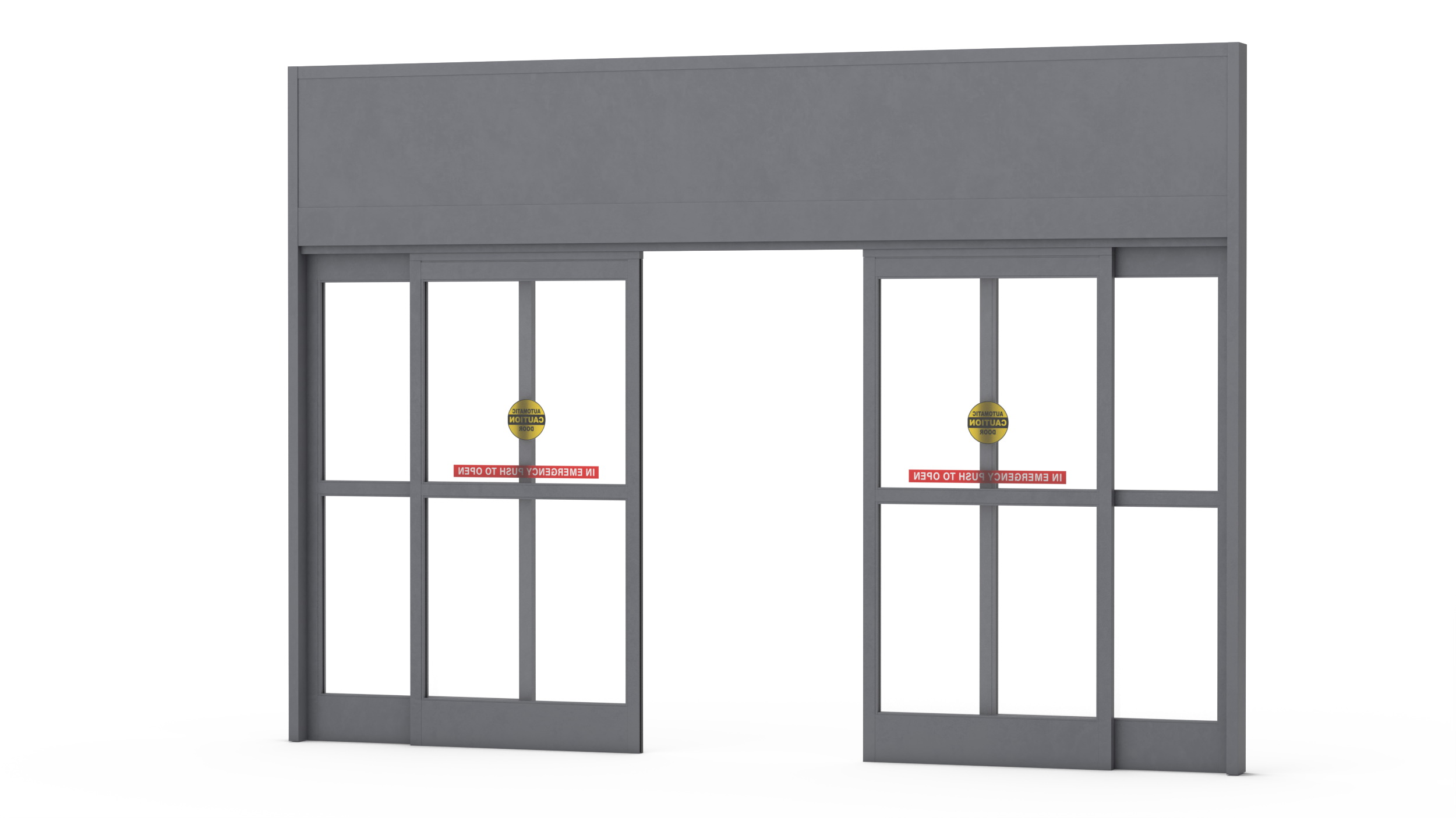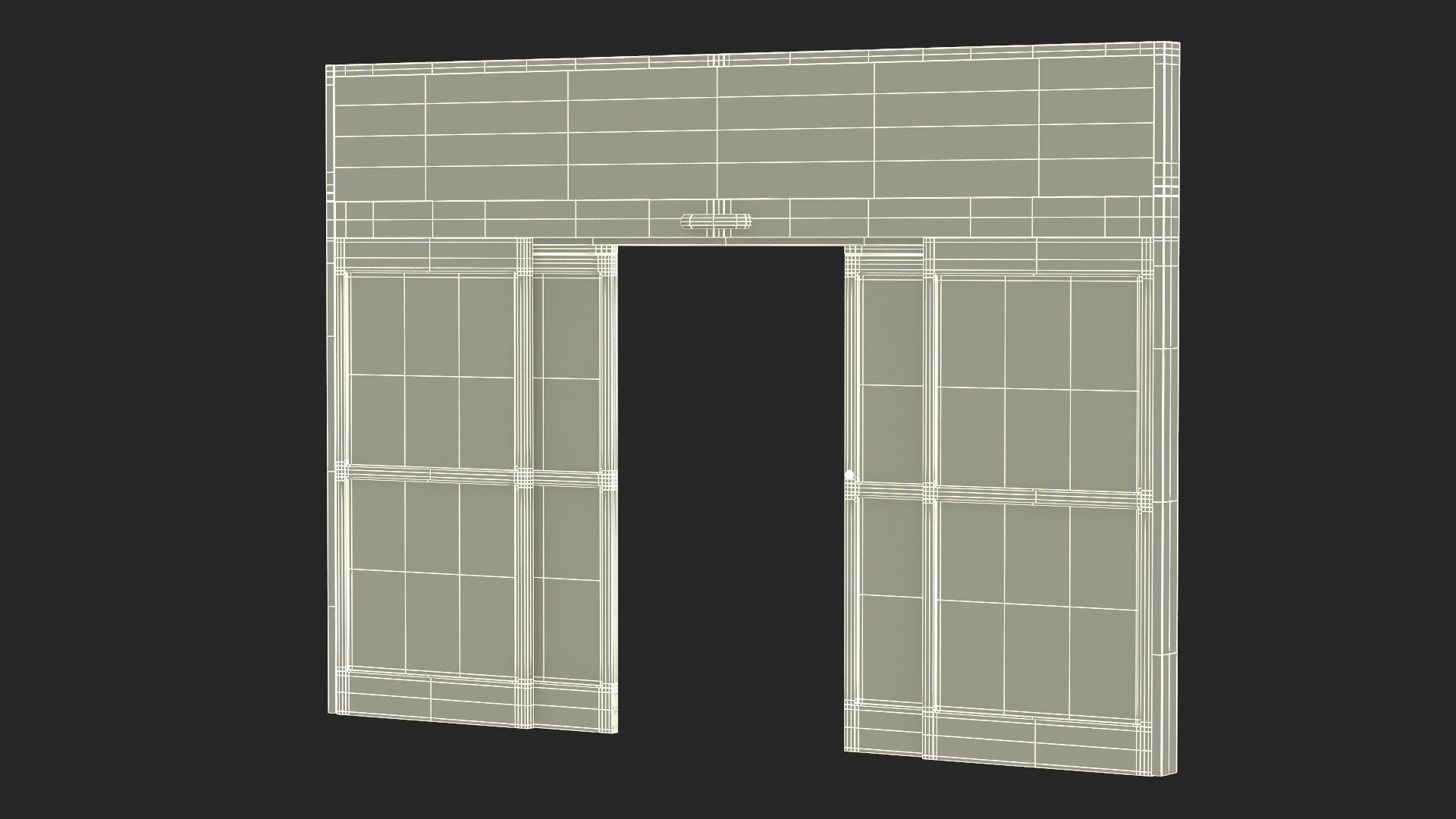 Retail Sliding Door System with Aluminium Framing is a 3D model of double wings glass sliding door which is a well known type of door which opens horizontally by sliding (horizontal to a wall).