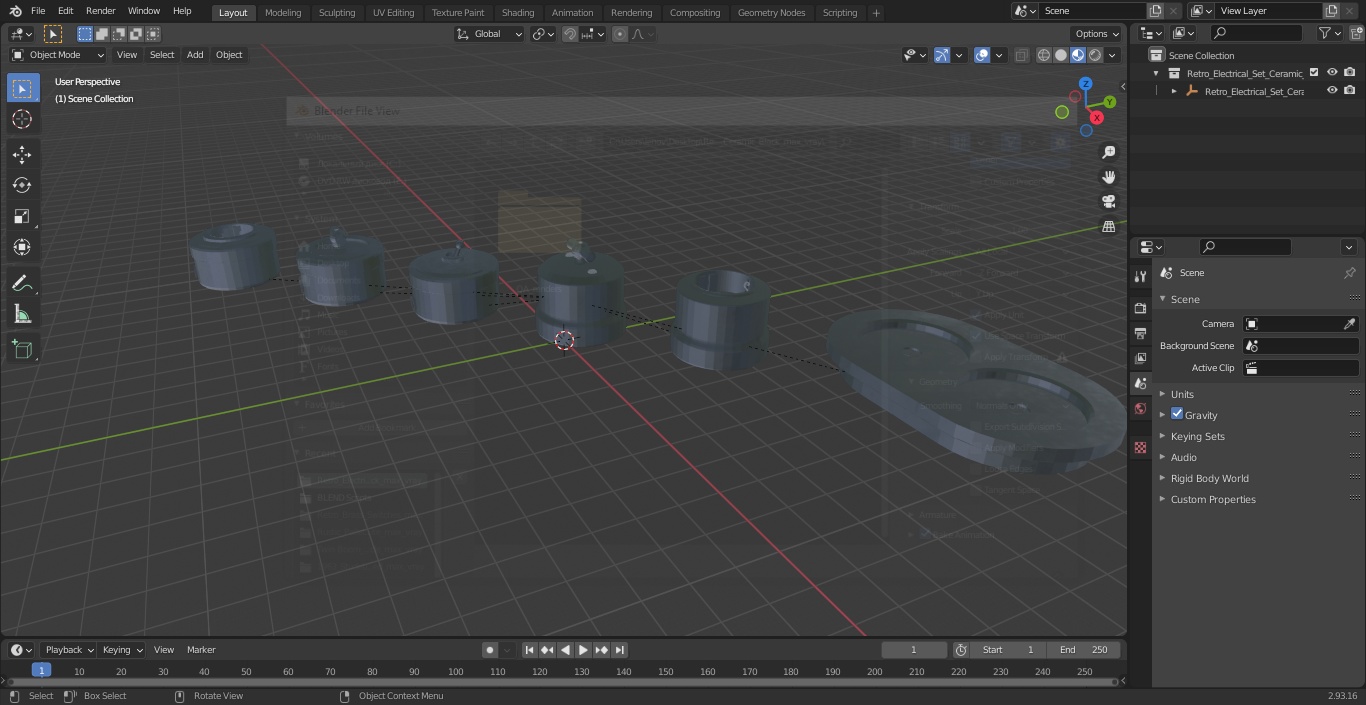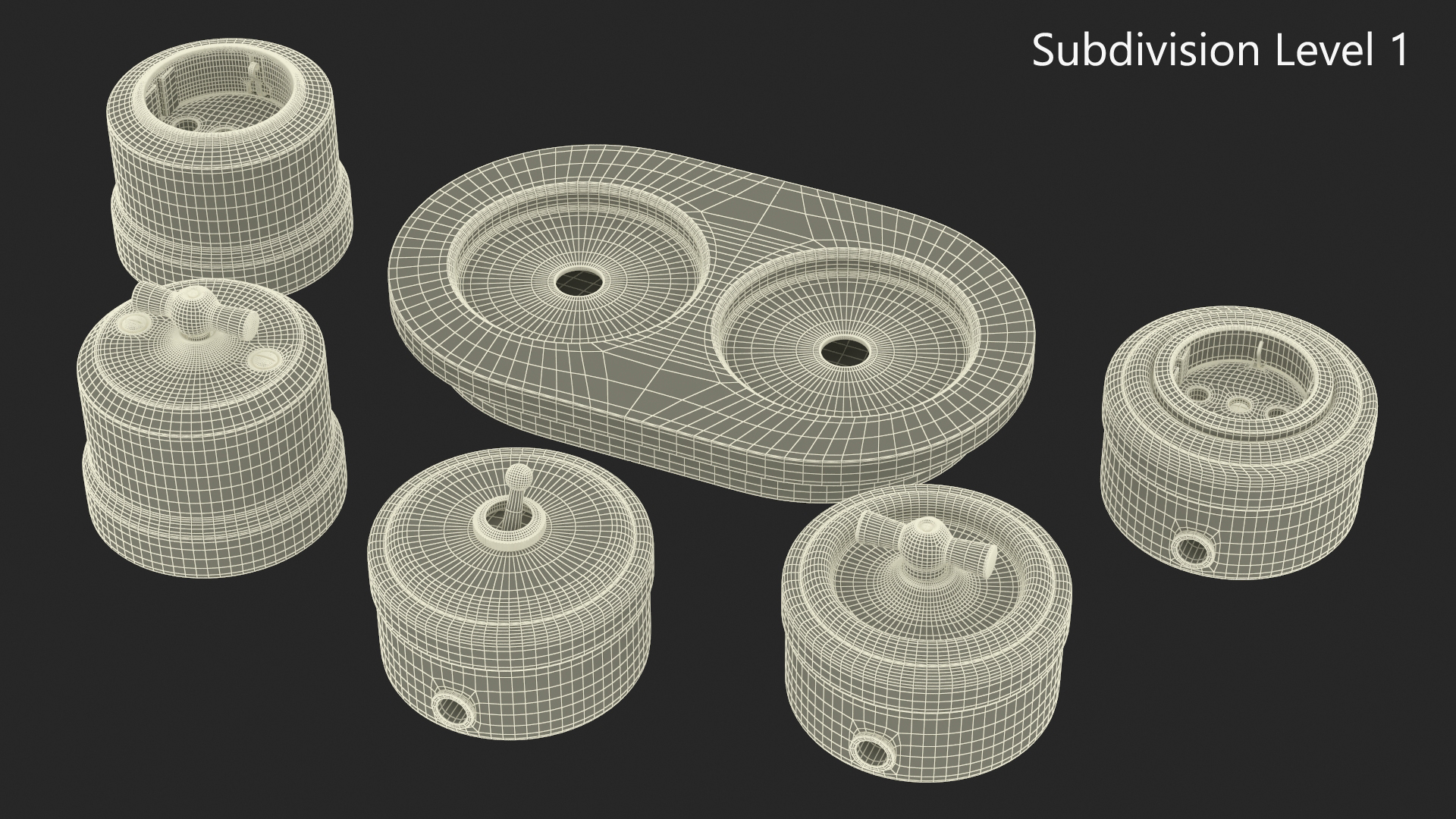 Retro Electrical Set Ceramic Black is a 3d model of components that are used in electrical systems to control and distribute electrical power and that are designed to resemble vintage or retro styles.