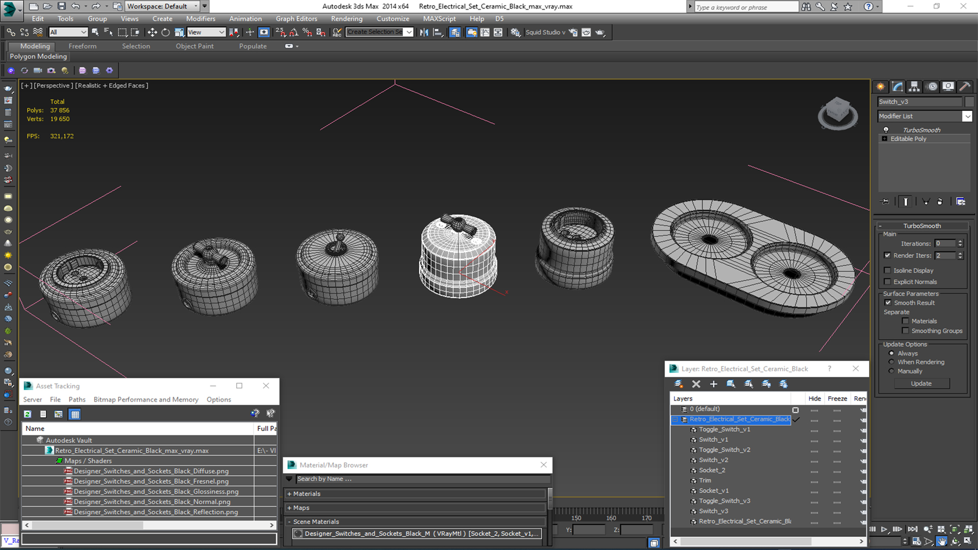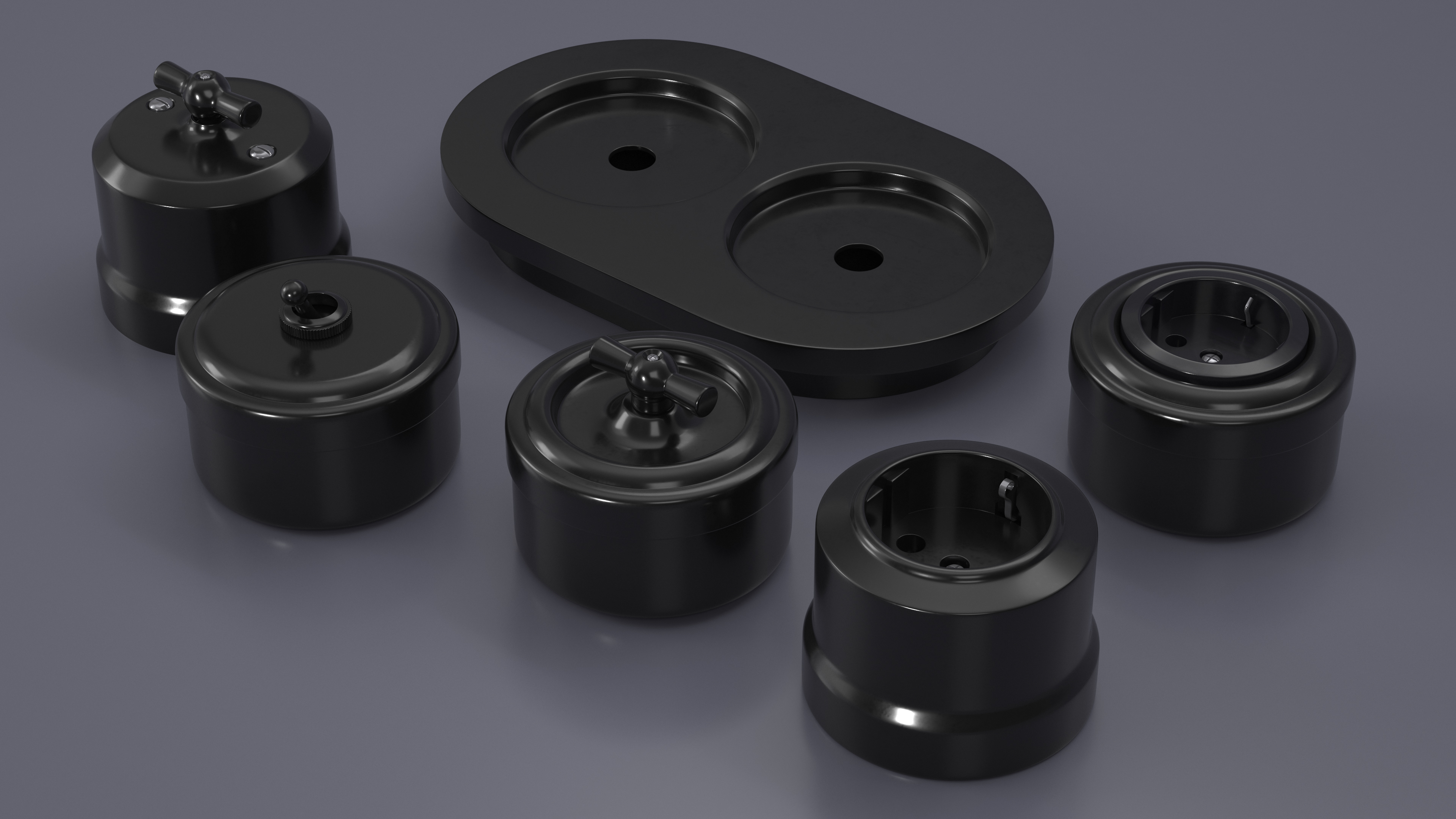 Retro Electrical Set Ceramic Black is a high quality, photo real 3d model that will enhance detail and realism to any of your rendering projects. The model has a fully textured, detailed design that allows for close-up renders, and was originally modeled in 3ds Max 2020 and rendered with V-Ray. Renders have no postprocessing!