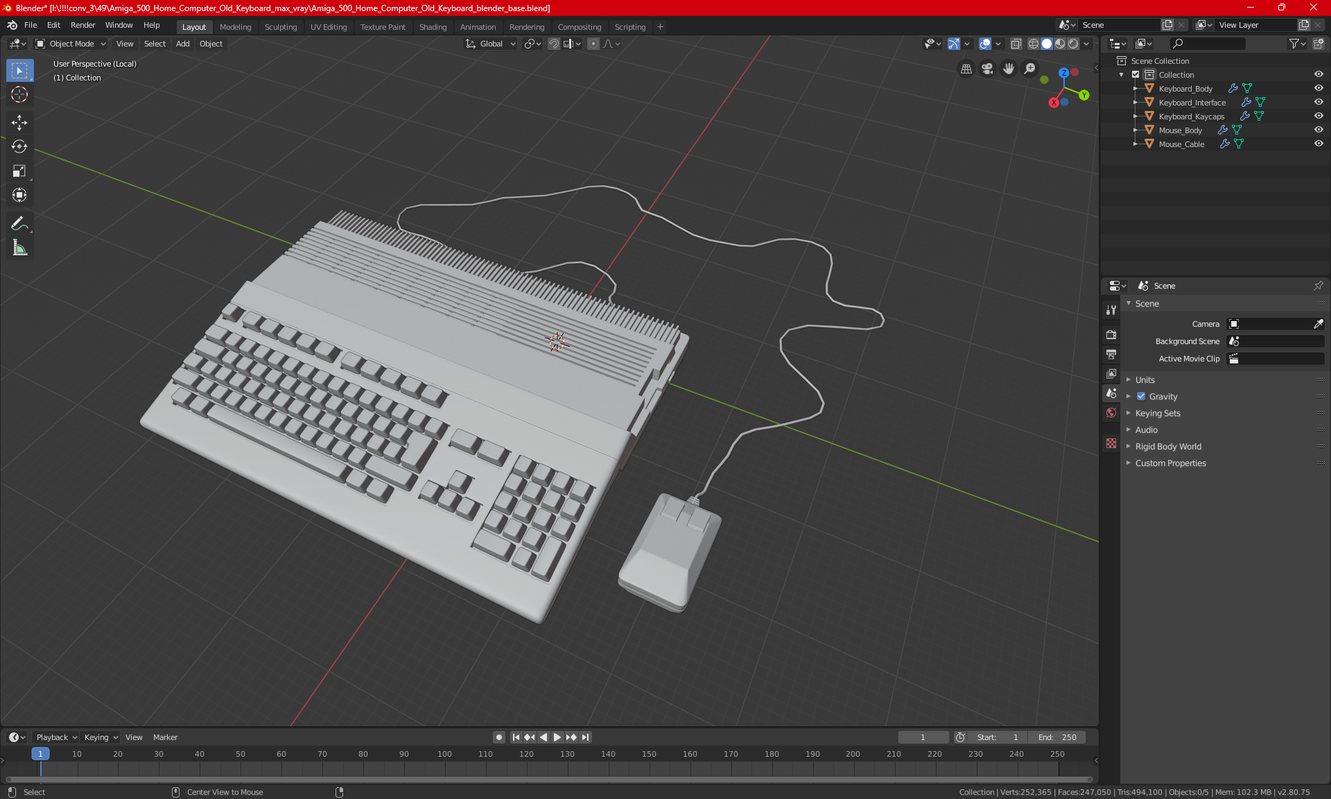 Retro Home Computer with Keyboard is a 3D model of the obsolete computer system unit without display (monitor) but with mouse and keyboard.