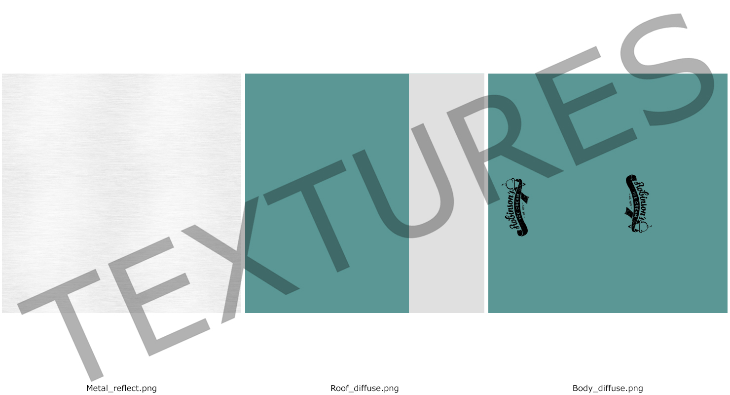 All textures and materials are included and mapped. (All colors can be easily modified.)
