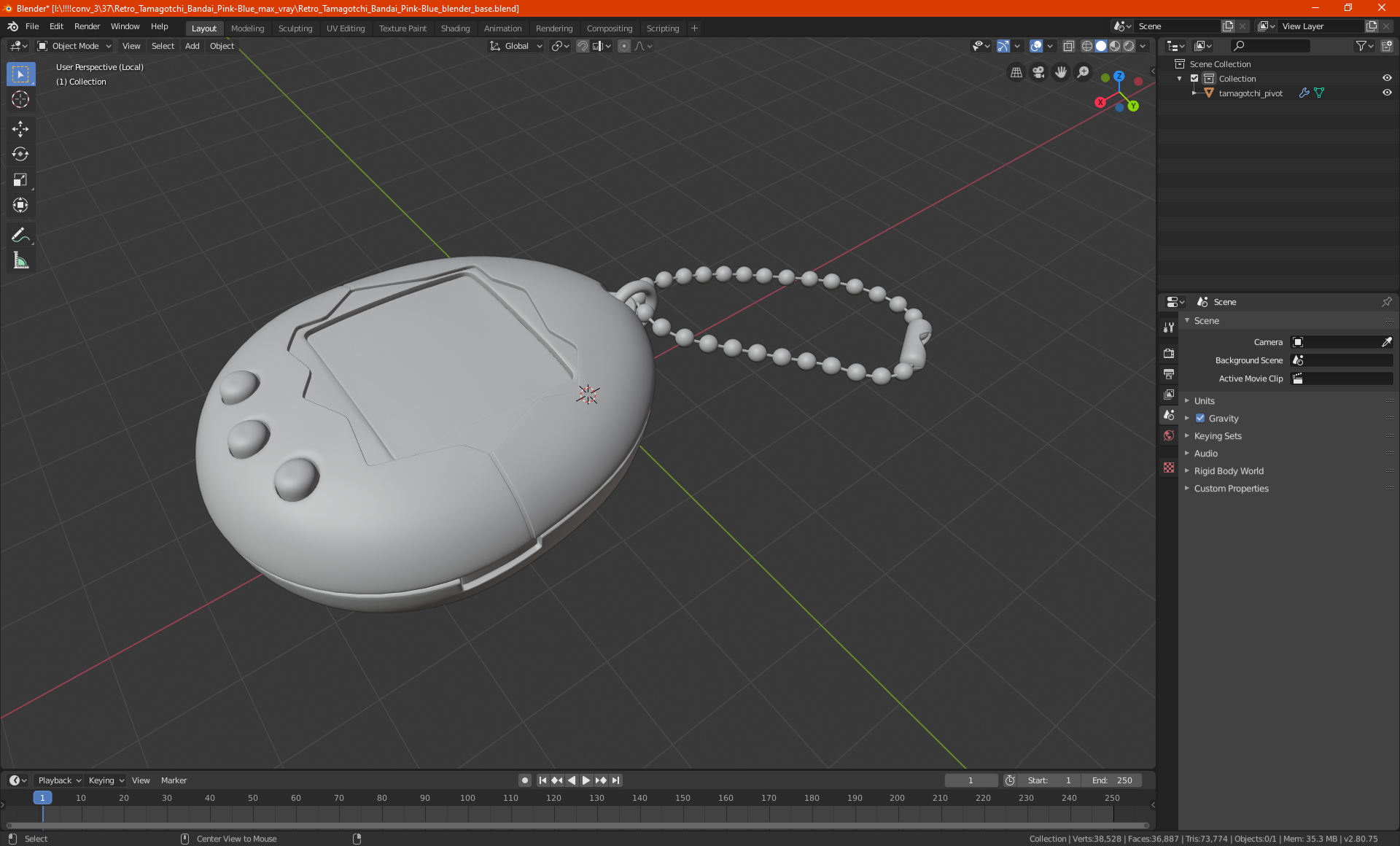 Retro Tamagotchi Bandai Yellow-Blue is a high quality, photo real 3d model that will enhance detail and realism to any of your rendering projects. The model has a fully textured, detailed design that allows for close-up renders, and was originally modeled in 3ds Max 2020 and rendered with V-Ray. Renders have no postprocessing!