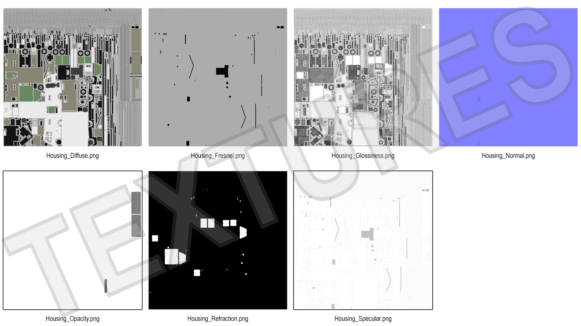 All textures and materials are included and mapped. (All colors can be easily modified.)