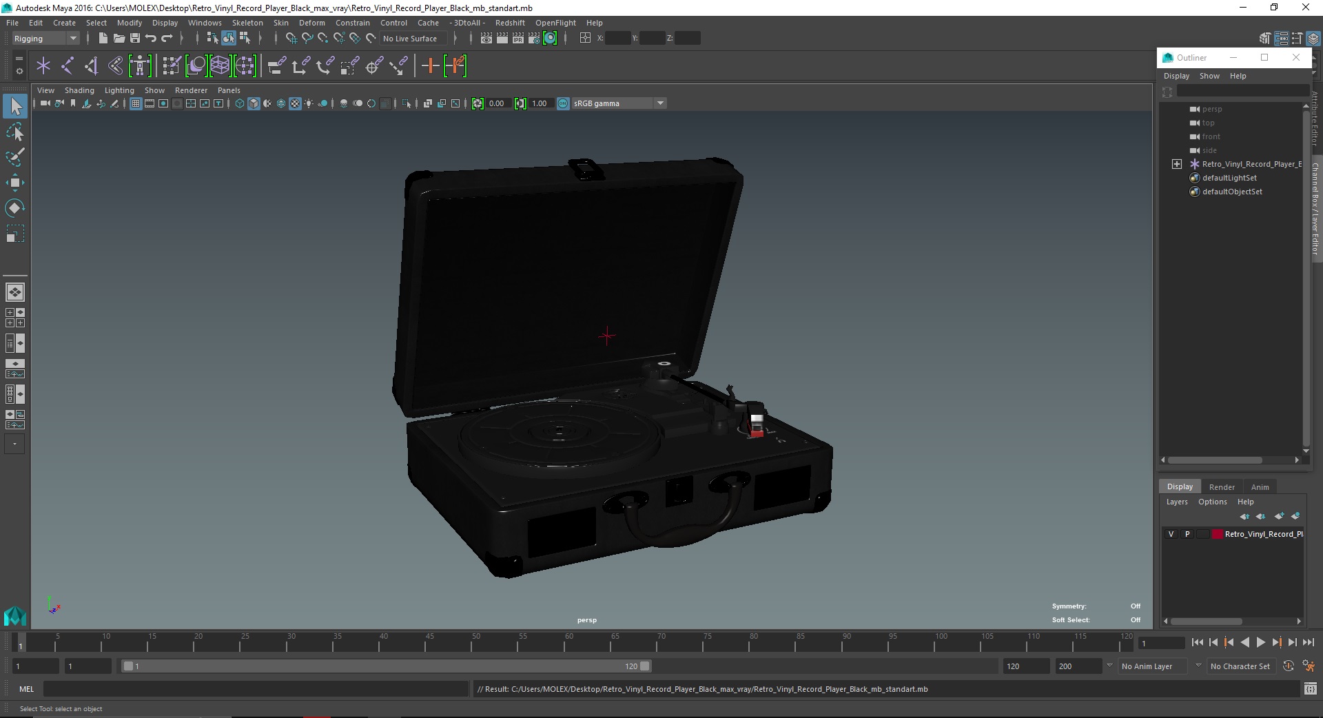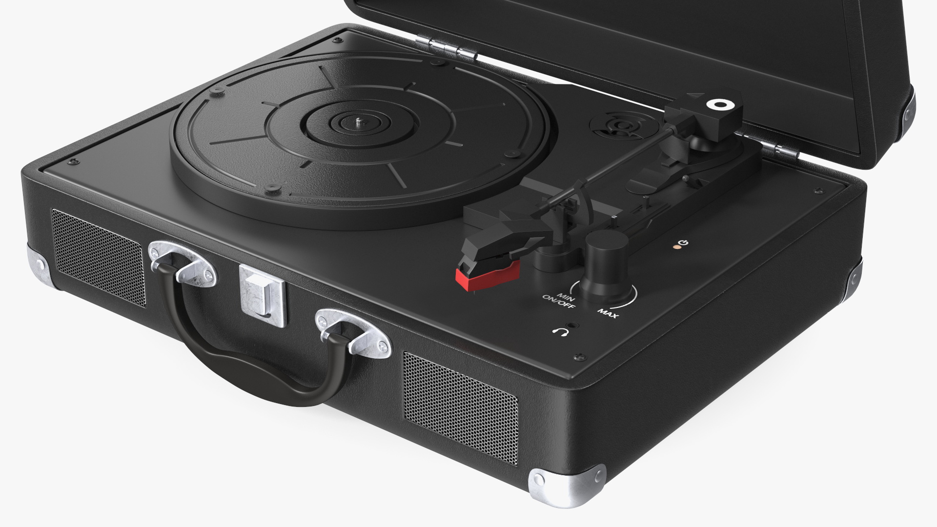 Retro Vinyl Record Player Black is a 3D model of modern replica (remake) of the antique vinyl record player which is suitcase type turntable appliance.
