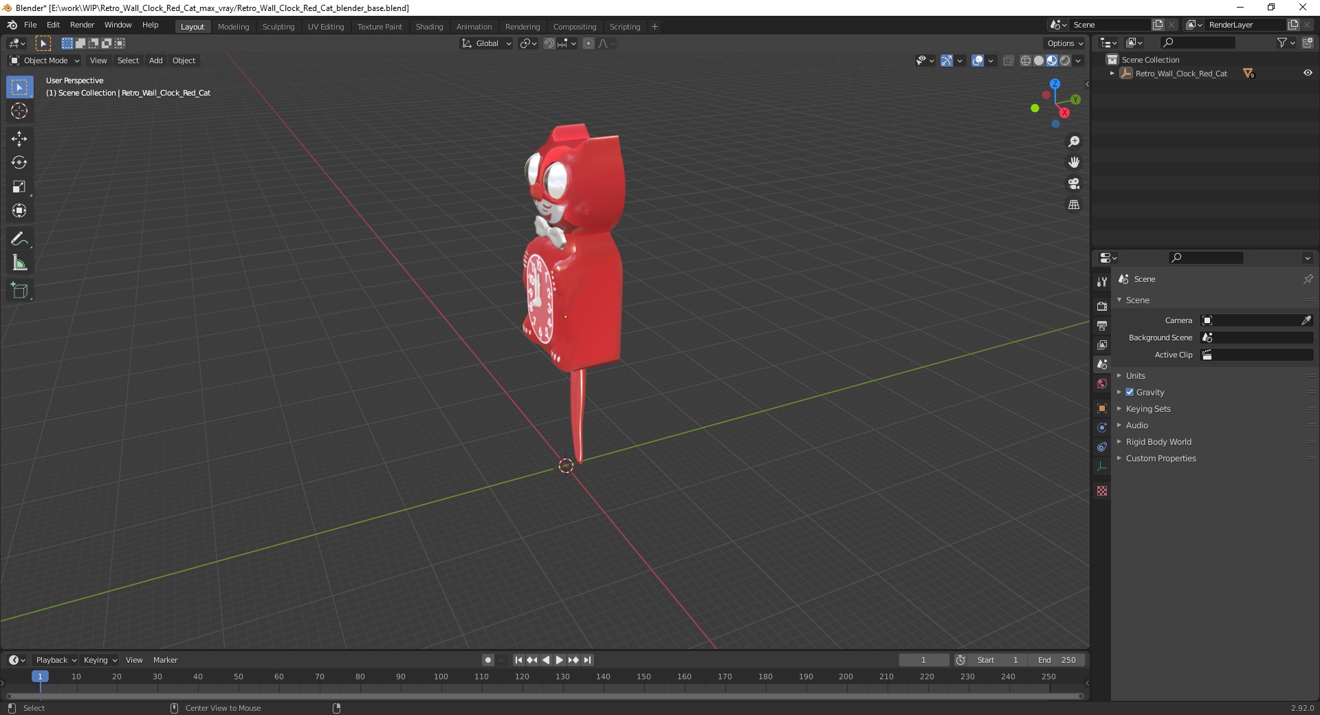 Retro Wall Clock Red Cat is a high quality, photo real 3d model that will enhance detail and realism to any of your rendering projects. The model has a fully textured, detailed design that allows for close-up renders, and was originally modeled in 3ds Max 2020 and rendered with V-Ray. Renders have no postprocessing!