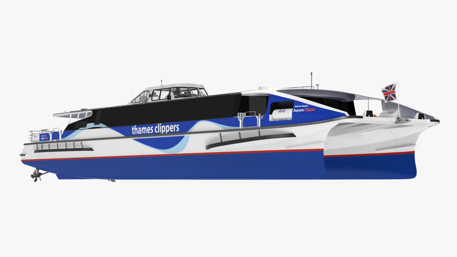 River Thames London Passenger Boat Aurora Clipper is a 3d model of type of passenger boat that operates on the River Thames in London, England.