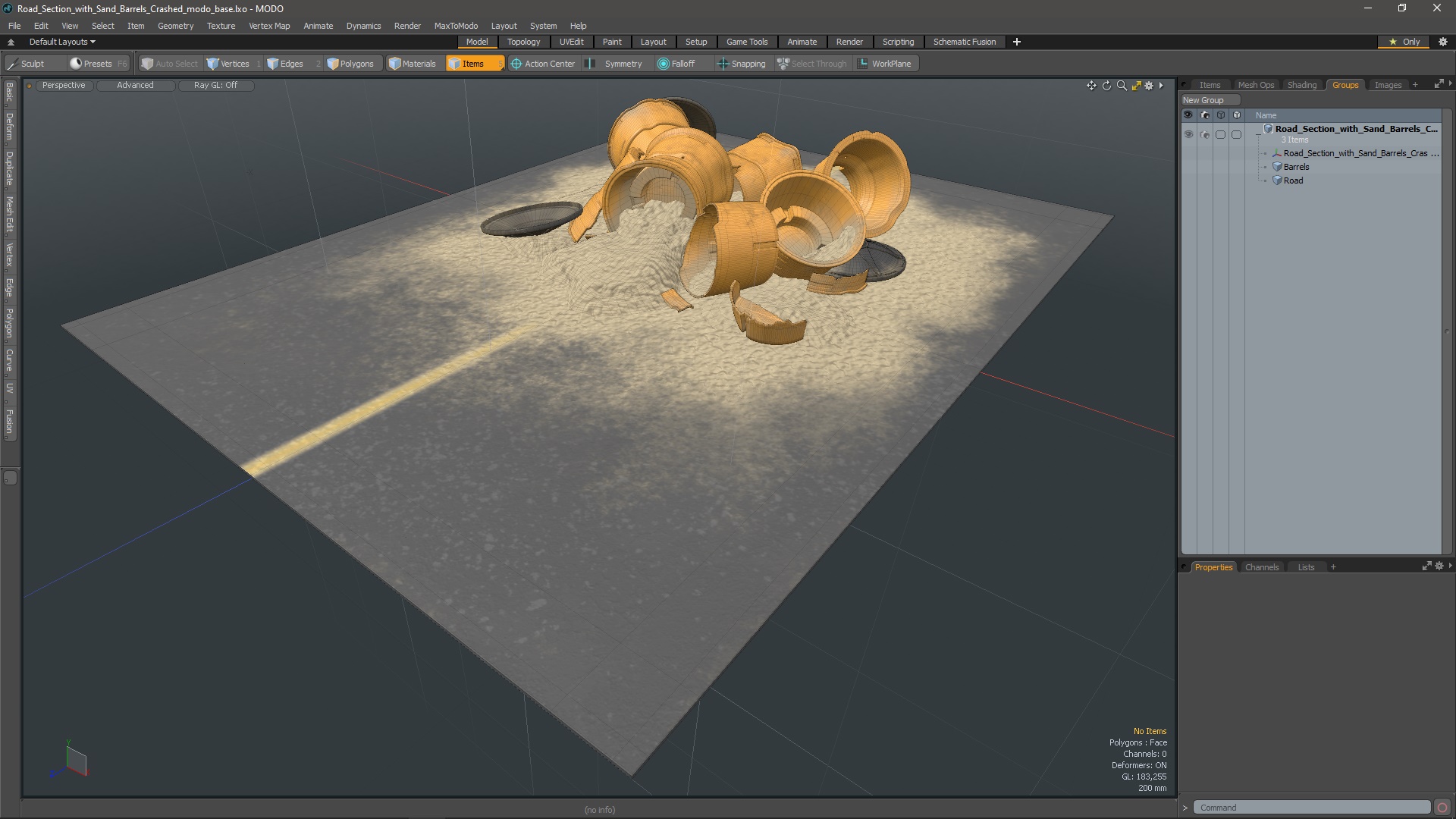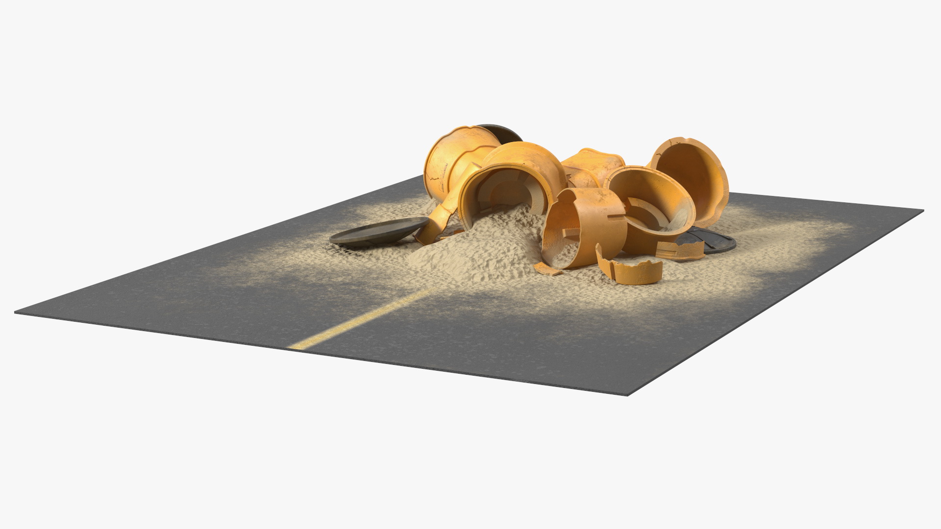 3D Road Section with Sand Barrels Crashed model