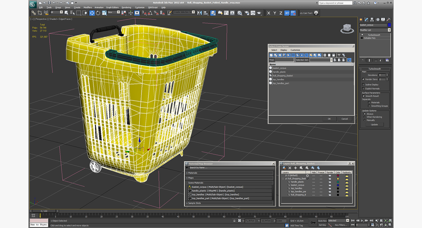 Roll Shopping Basket Folded Handle is a high quality, photo real 3d model that will enhance detail and realism to any of your rendering projects. The model has a fully textured, detailed design that allows for close-up renders, and was originally modeled in 3ds Max 2020 and rendered with V-Ray. Renders have no postprocessing!