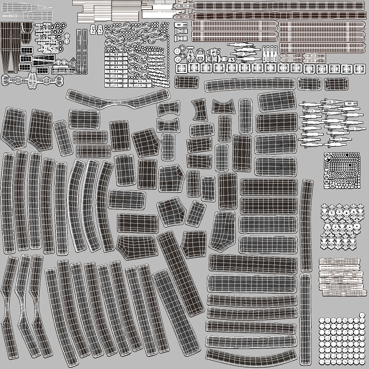 All textures and materials are included and mapped. (All colors can be easily modified.)