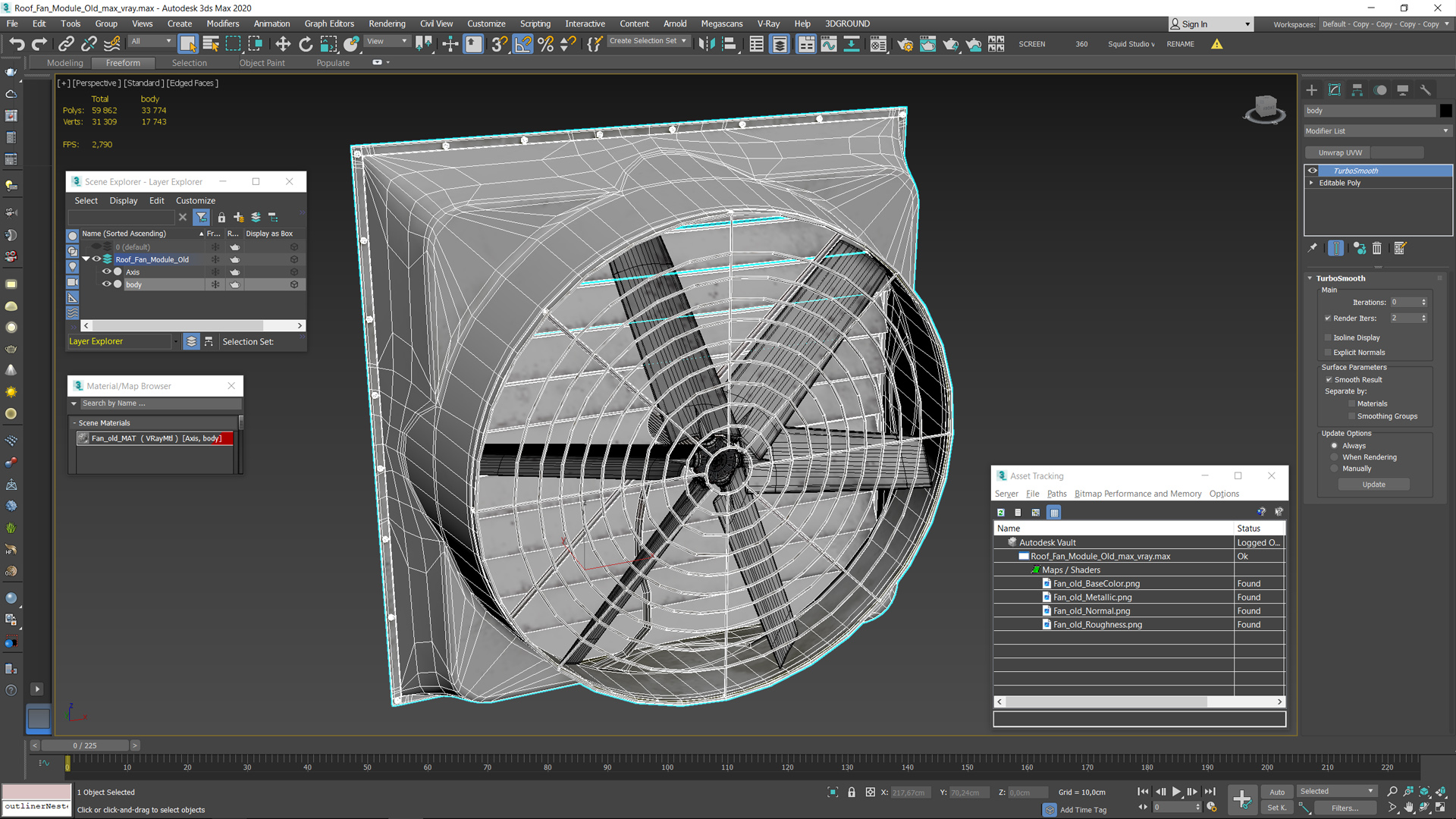Roof Fan Module Old is a high quality, photo real 3d model that will enhance detail and realism to any of your rendering projects. The model has a fully textured, detailed design that allows for close-up renders, and was originally modeled in 3ds Max 2020 and rendered with V-Ray. Renders have no postprocessing!