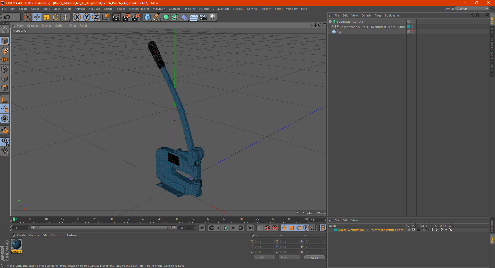 Roper Whitney No 17 Deepthroat Bench Punch is a high quality, photo real 3d model that will enhance detail and realism to any of your rendering projects. The model has a fully textured, detailed design that allows for close-up renders, and was originally modeled in 3ds Max 2020 and rendered with V-Ray. Renders have no postprocessing!