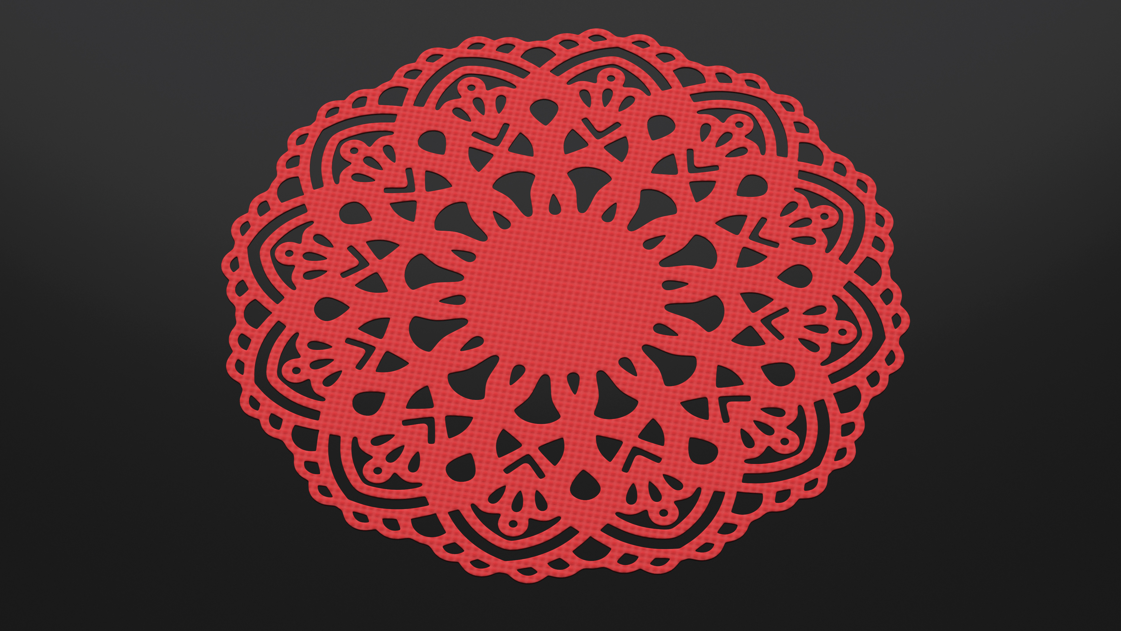 Round Paper Lace Doilie Red is a high quality, photo real 3d model that will enhance detail and realism to any of your rendering projects. The model has a fully textured, detailed design that allows for close-up renders, and was originally modeled in 3ds Max 2020 and rendered with V-Ray. Renders have no postprocessing!