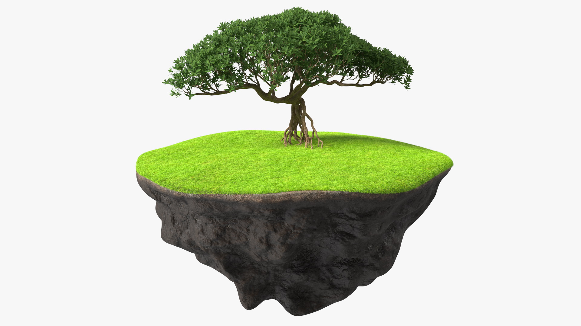 Fantasy toy flying prop with green lawn (meadow), isle and green tree which is casual art prop which designed for computer game development.