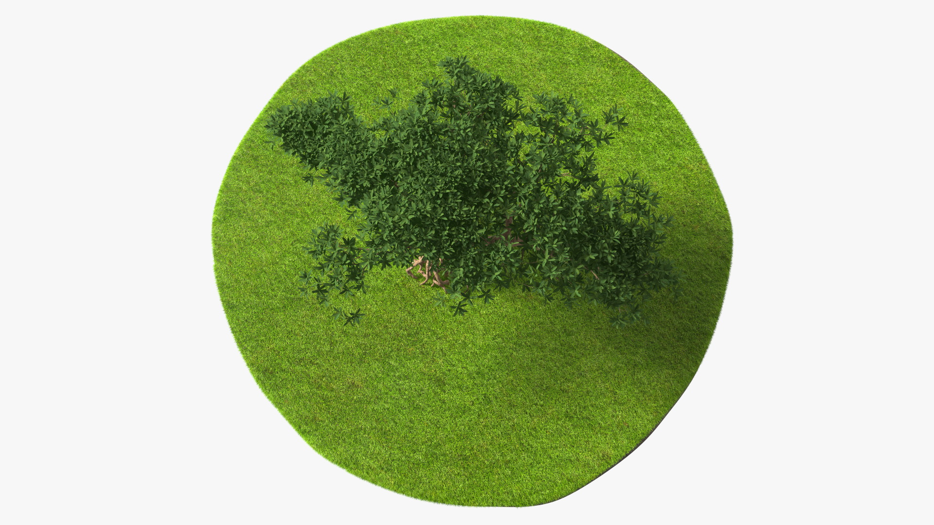 Round Soil Ground Cross Section with Tree Fur is a three-dimensional model of a toy flying object with an large tree plant and lawn.