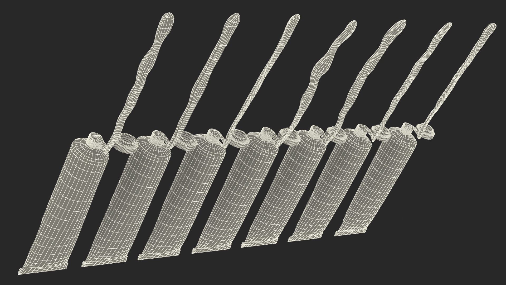 Row of Squeezed Oil Paint Tubes is a three-dimensional model of a collapsible tubes set (squeeze tubes) which are art paint package equipment with some leaked paints.