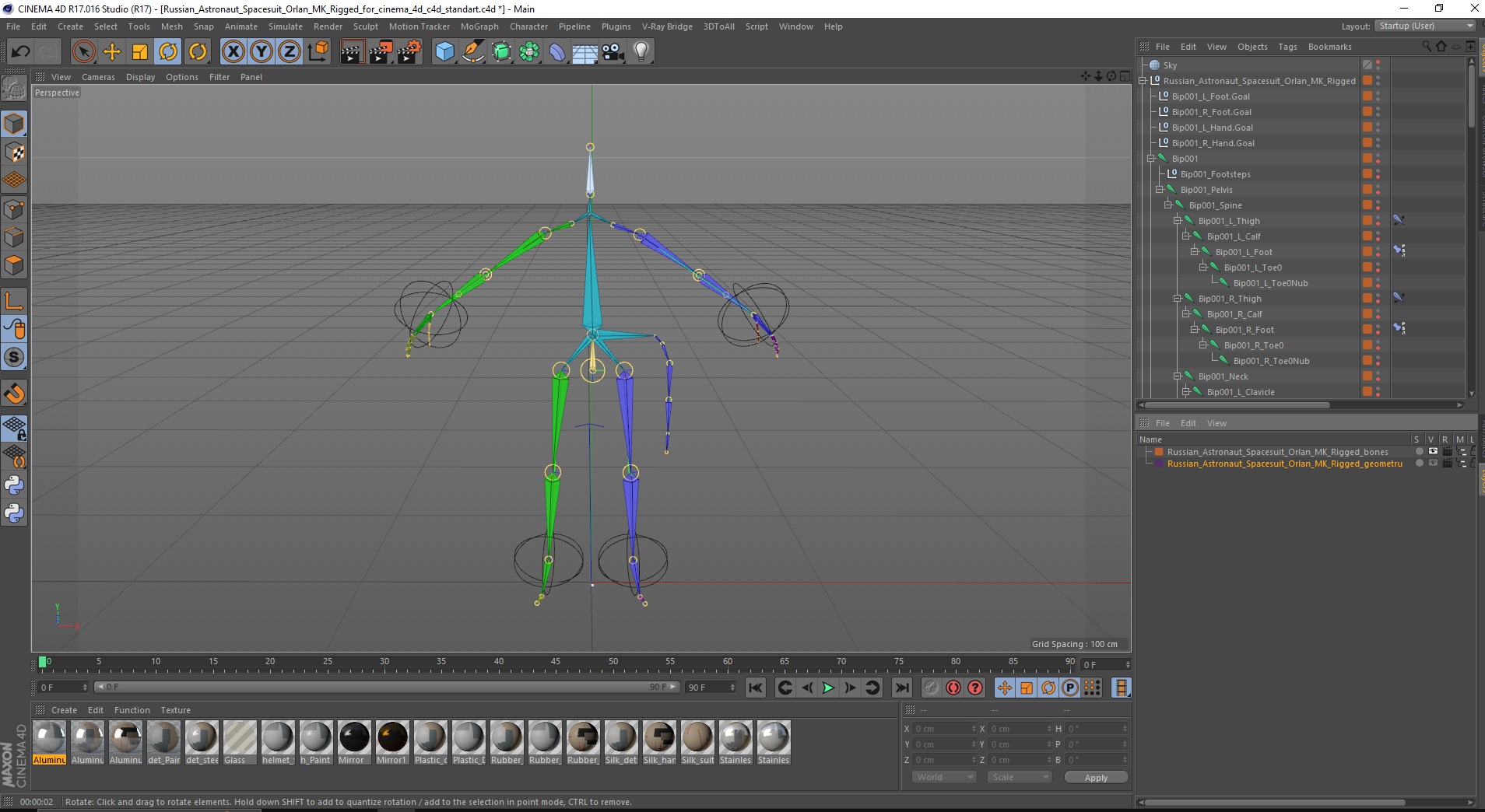 Russian Astronaut Spacesuit Orlan MK Rigged for Cinema 4D is fully rigged and is ready to be animated in Cinema 4D. You can easily position it the way you need or animate it the way your project requires. See the screenshots to get an idea of how rigging works. The pose of the model on the render images is an example and can be recreated using rig, it is not initially included into the product.