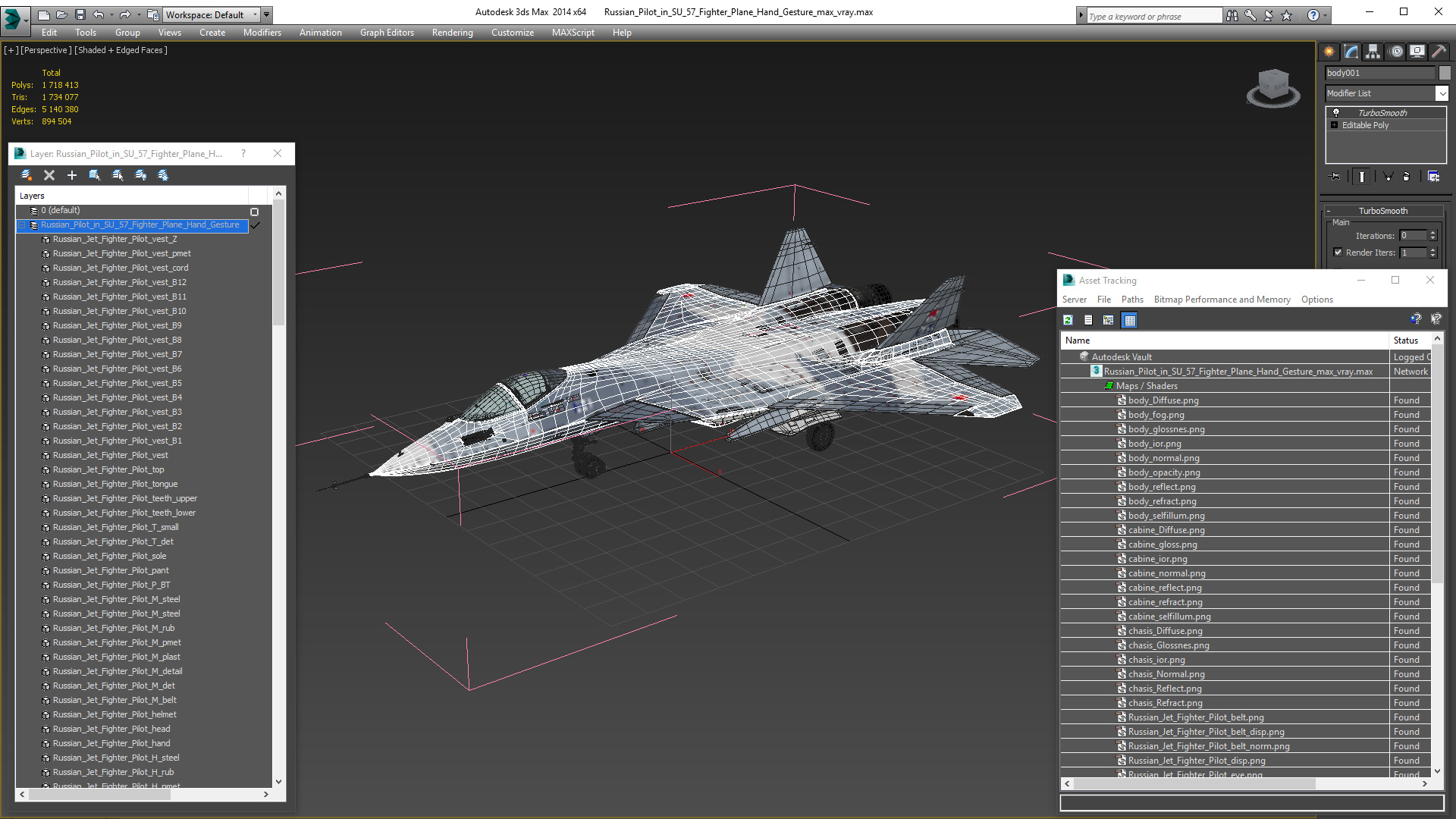 Russian Pilot in SU 57 Fighter Plane Hand Gesture is a high quality, photo real 3d model that will enhance detail and realism to any of your rendering projects. The model has a fully textured, detailed design that allows for close-up renders, and was originally modeled in 3ds Max 2020 and rendered with V-Ray. Renders have no postprocessing!