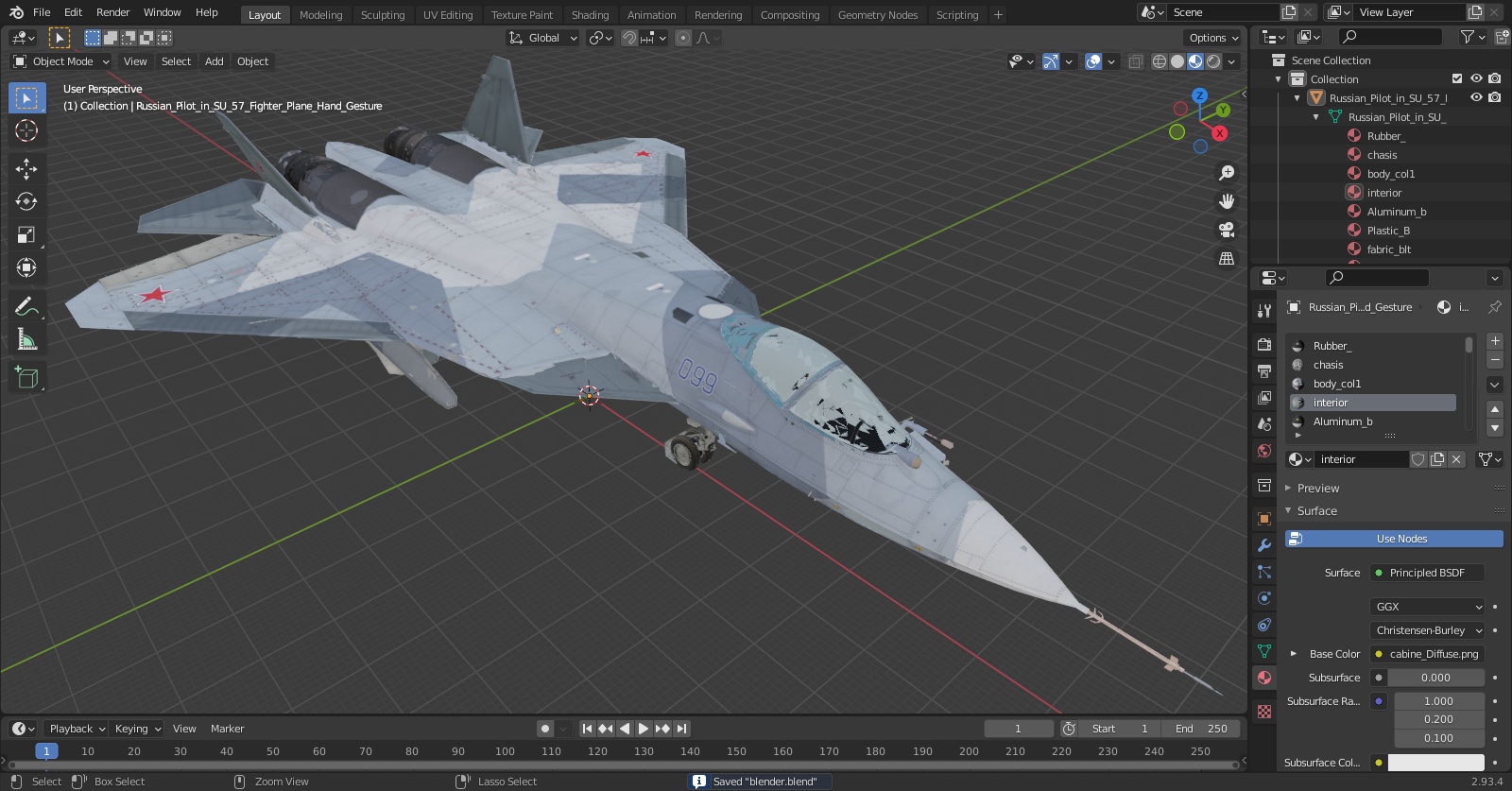 Russian Pilot in SU 57 Fighter Plane Hand Gesture is a three-dimensional model of a Russian stealth, single-seat, twin-engine multirole jet airplane fighter.