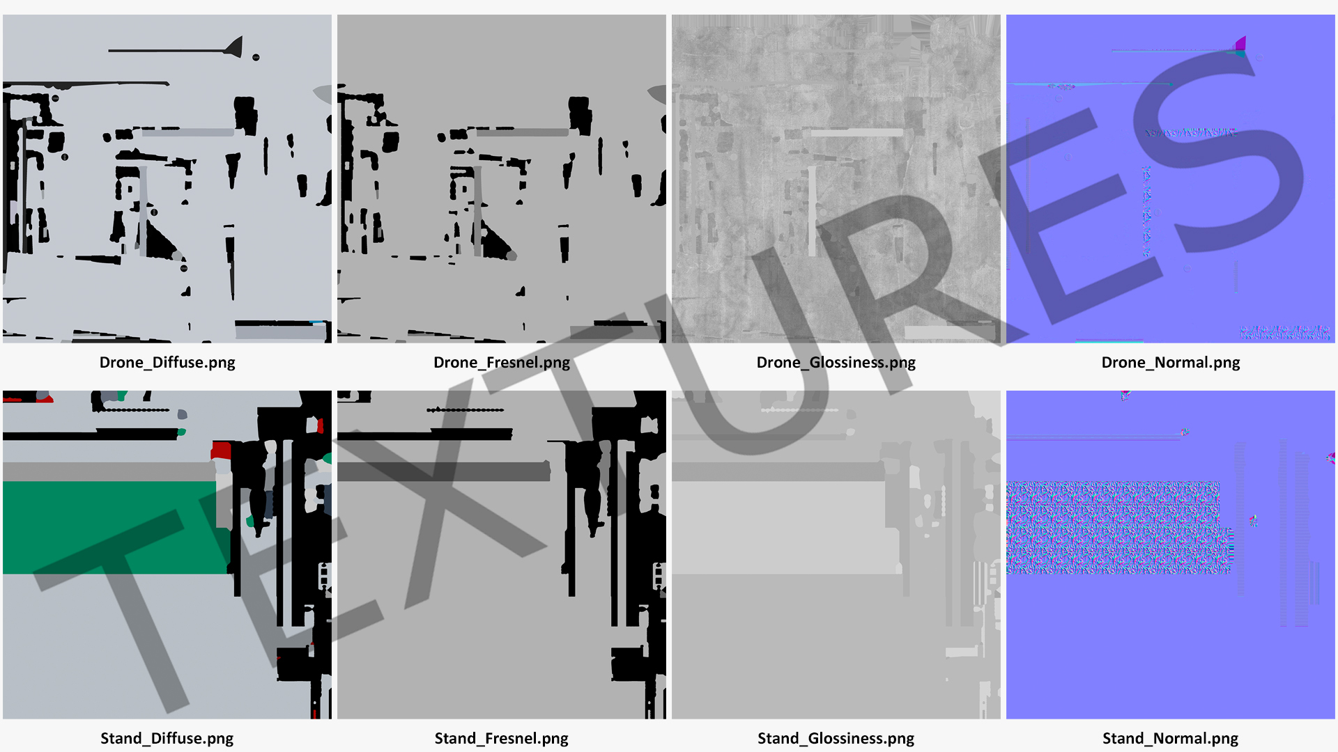 All textures and materials are included and mapped. (All colors can be easily modified.)