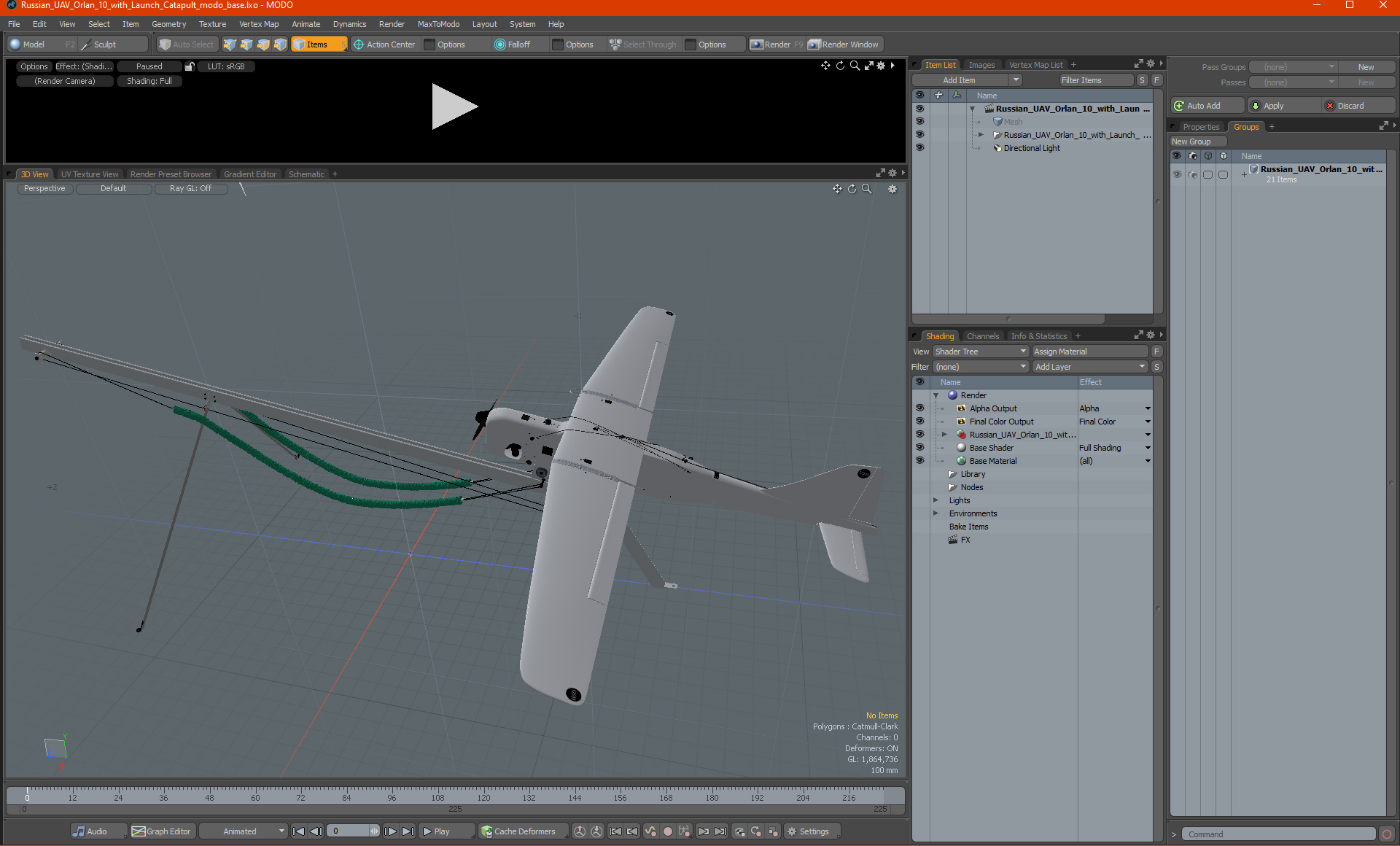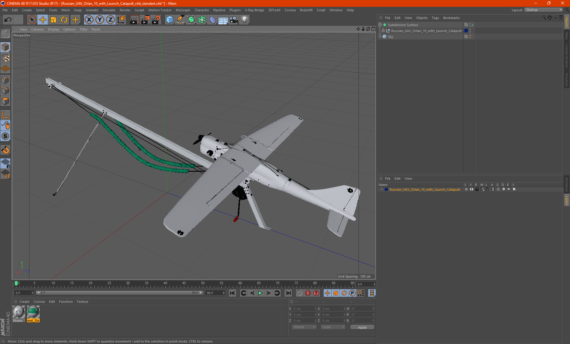Russian UAV Orlan 10 with Launch Catapult is a high quality, photo real 3d model that will enhance detail and realism to any of your rendering projects. The model has a fully textured, detailed design that allows for close-up renders, and was originally modeled in 3ds Max 2020 and rendered with V-Ray. Renders have no postprocessing!