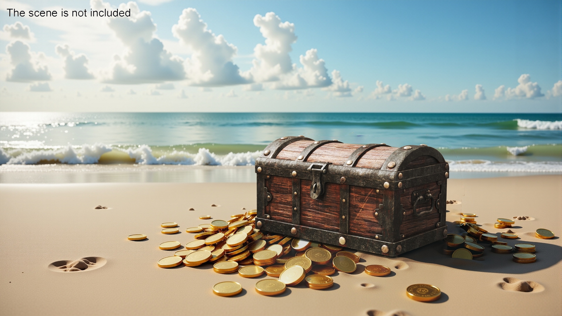 Rustic Treasure Chest is a three-dimensional model of ancient wooden chest that is an iconic pirate theme prop, and that can be used for storage of antique golden coins (money and jewelry treasure).