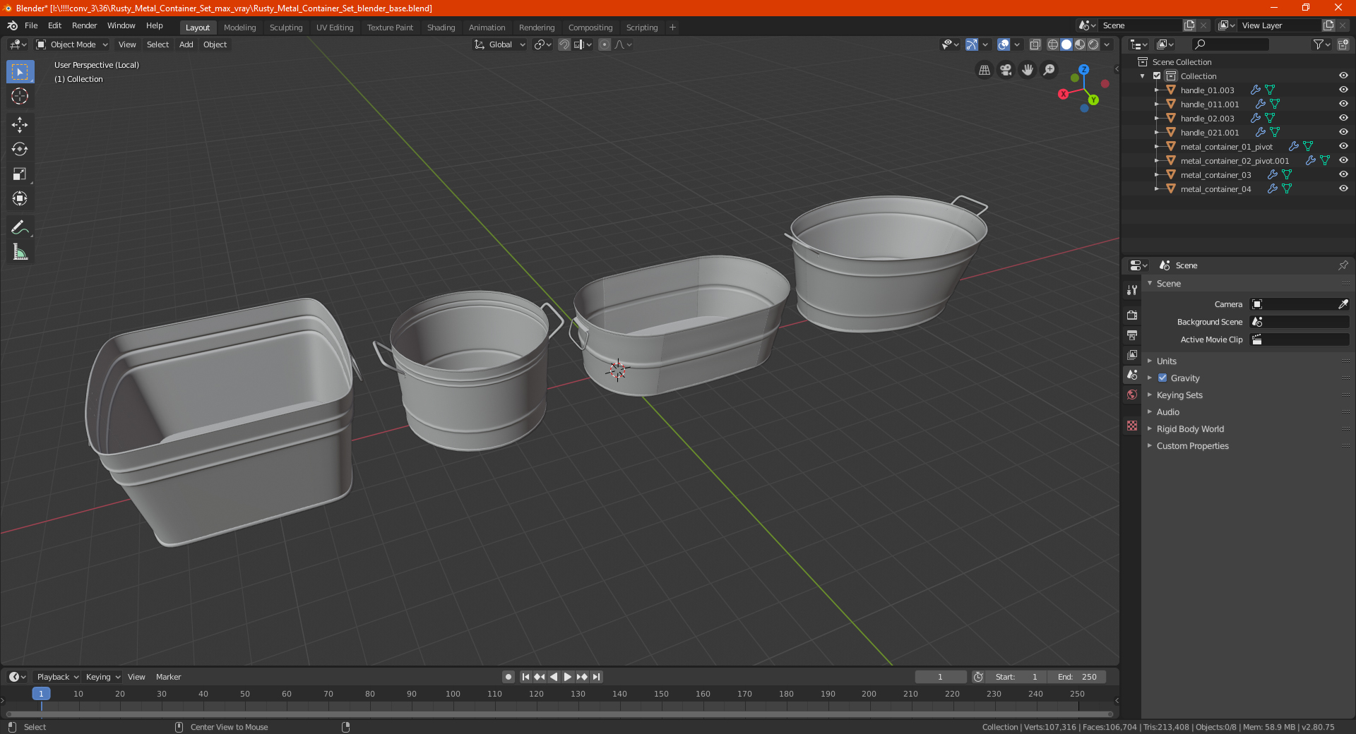 Rusty Metal Container Set is a high quality, photo real 3d model that will enhance detail and realism to any of your rendering projects. The model has a fully textured, detailed design that allows for close-up renders, and was originally modeled in 3ds Max 2020 and rendered with V-Ray. Renders have no postprocessing!