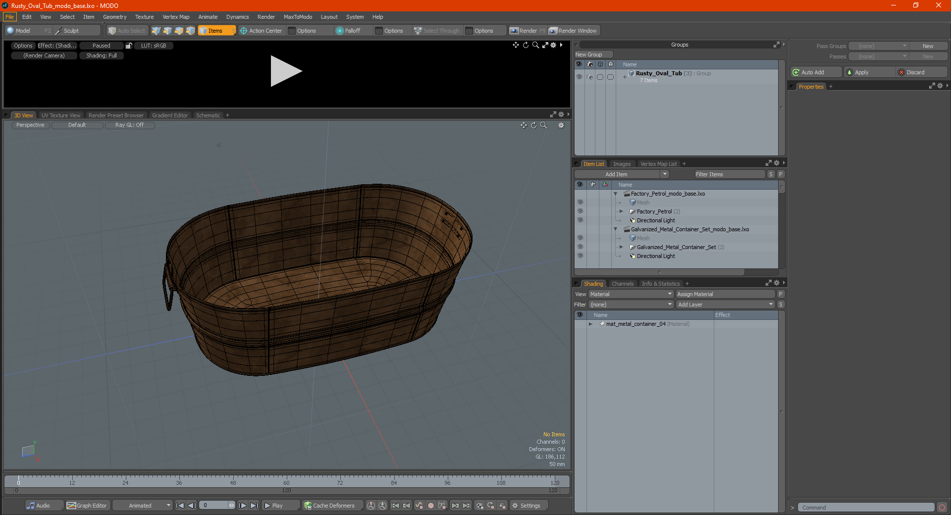 Rusty Oval Tub is a high quality, photo real 3d model that will enhance detail and realism to any of your rendering projects. The model has a fully textured, detailed design that allows for close-up renders, and was originally modeled in 3ds Max 2020 and rendered with V-Ray. Renders have no postprocessing!