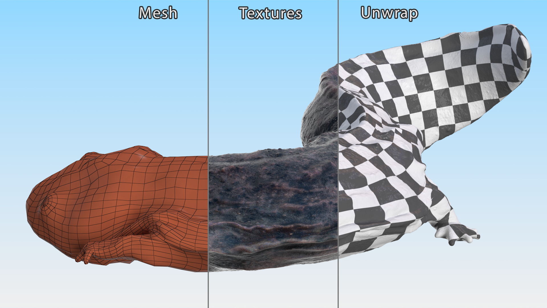 Salamander Dark Wet Lying is a 3d model of amphibian with a long, slender body, a tail, and four legs. They are typically found in moist habitats such as forests, lakes, and streams. Salamanders are known for their ability to regenerate lost limbs and tails. For biology science, semiaquatic animals, semi-aquatic animals, wild amphibian animals, zoological science, reptile type animals, wild animals, and amphibian animals promotional projects. Salamander Dark Wet Lying is a high quality, photo real 3d model that will enhance detail and realism to any of your rendering projects. The model has a fully textured, detailed design that allows for close-up renders, and was originally modeled in 3ds Max 2020 and rendered with V-Ray. Renders have no postprocessing! Hope you like it! ***** Features: - High quality polygonal model, has real dimensions. Easy to merge into your scene. - Units: cm - The model was created with the optimal number of polygons. (The Meshsmooth modifier is assigned to the original mesh. Easy to increase mesh resolution if necessary.) - All the objects come with complete UVs All textures and materials are included and mapped. (All colors can be easily modified.) - All objects are logically named and grouped for ease of objects selection and scene management. - No part-name confusion when importing several models into a scene. - No cleaning up necessary (Model does not include any backgrounds or scenes used in preview images.) - just drop model into your scene. - No special plugin needed to open scene. - PBR Materials ***** File Formats: - 3ds Max - Cinema 4D - Maya - Blender - OBJ, 3DS, FBX ***** Textures Formats: - 7 png (4096x4096) ***** 3d Molier International is a team of 3D artists with over a 15 years of experience. The company participated in various projects allowing us to learn our clients needs. Every model we build goes through thorough Quality assessment both visual and technical to make sure the assets look realistic and the models are of the best quality, which you can tell by looking at the renders - none of the has any postprocessing. We produce 3D models. This is our main activity. Our goal is to create a 3D copy of all objects on the world. Buy 3D models from professionals! Also check out our other models, just click on our user name to see complete gallery. (c) 3d_molier International - 2025