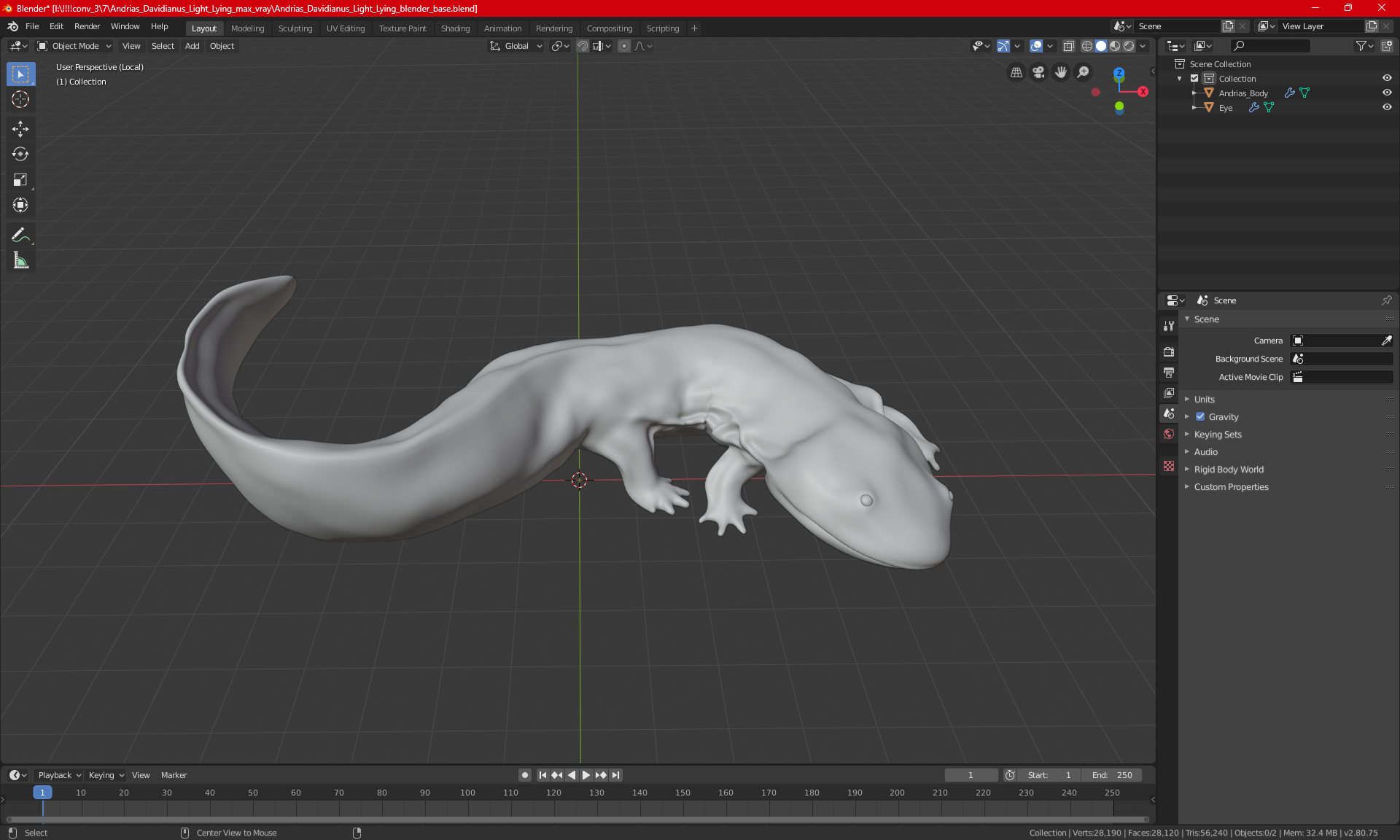 3D Aquatic Giant Salamander Light Wet Swimming model