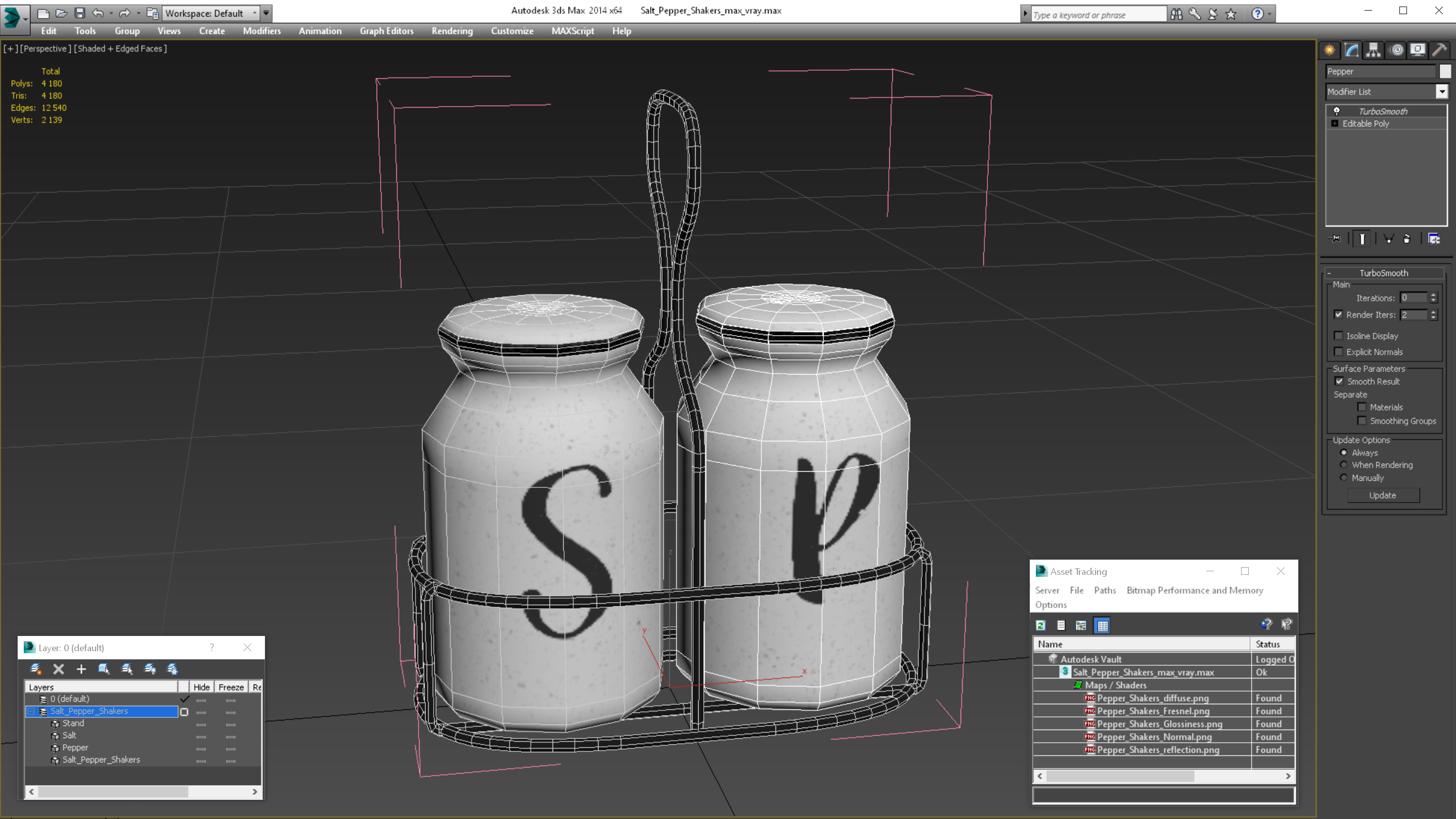 Salt Pepper Shakers is a high quality, photo real 3d model that will enhance detail and realism to any of your rendering projects. The model has a fully textured, detailed design that allows for close-up renders, and was originally modeled in 3ds Max 2020 and rendered with V-Ray. Renders have no postprocessing!