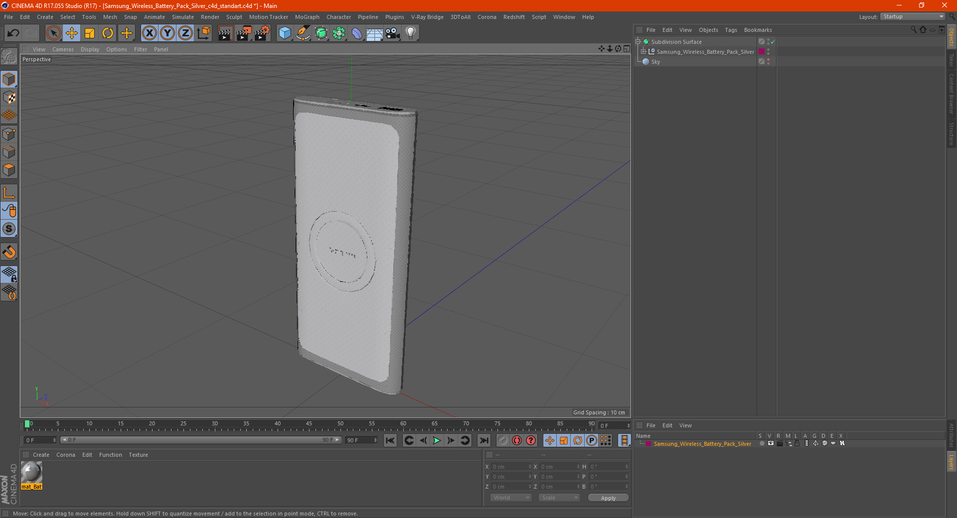 Samsung Wireless Battery Pack Silver is a high quality, photo real 3d model that will enhance detail and realism to any of your rendering projects. The model has a fully textured, detailed design that allows for close-up renders, and was originally modeled in 3ds Max 2020 and rendered with V-Ray. Renders have no postprocessing!