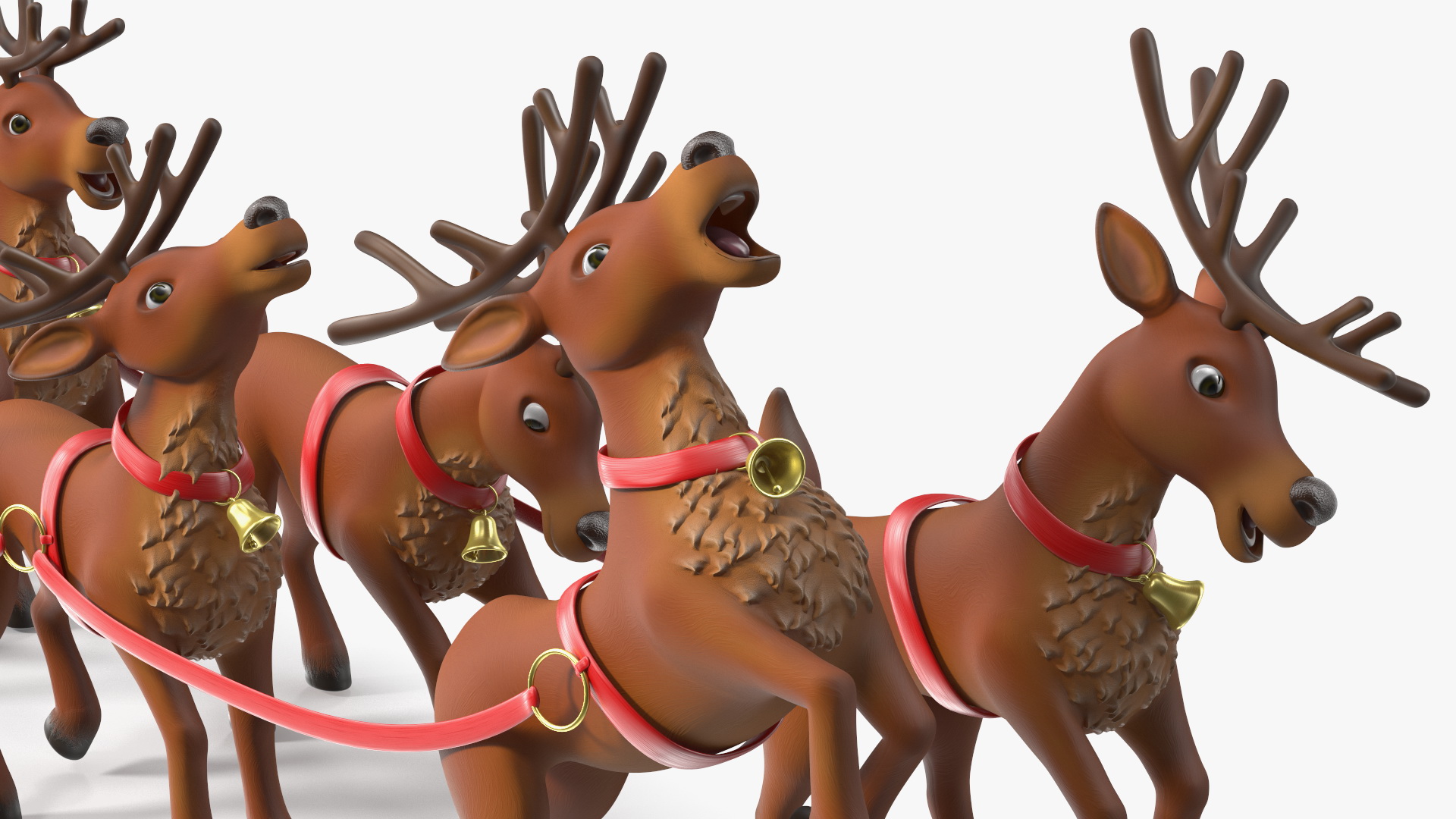 Santa Claus Sleigh with Deer Standing Fur is a three-dimensional model of festive holiday scene featuring Santa Claus in a well known sleigh pulled by a team of cheerful reindeer, ready to deliver presents and joy.