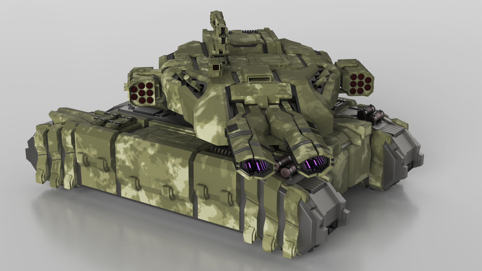 Sci Fi Heavy Tank Green Rigged is a 3d model of a futuristic, heavily armed combat vehicle designed for advanced military applications and sci-fi settings.