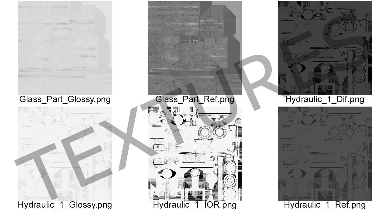 All textures and materials are included and mapped. (All colors can be easily modified.)