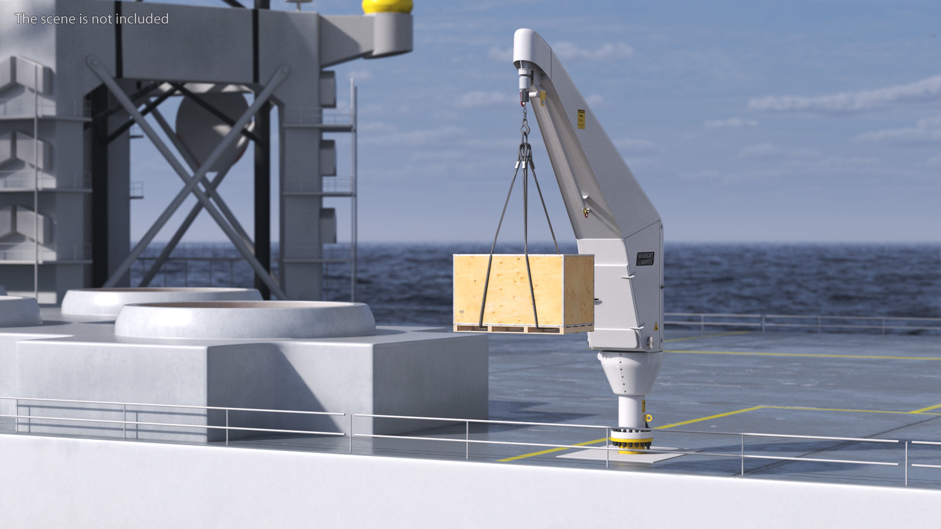 Seasight Davits Crane with Load is a 3d model of type of lifting equipment commonly used in maritime and offshore applications.