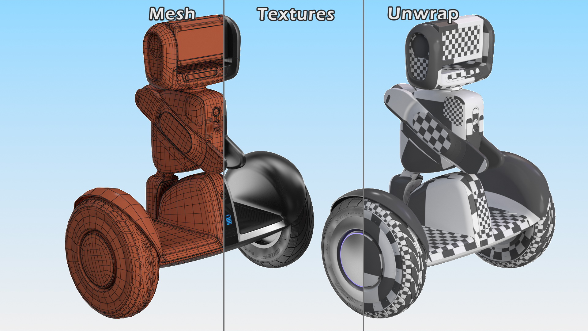 Segway Loomo Personal Robot and Transporter is a high quality, photo real 3d model that will enhance detail and realism to any of your rendering projects. The model has a fully textured, detailed design that allows for close-up renders, and was originally modeled in 3ds Max 2020 and rendered with V-Ray. Renders have no postprocessing!