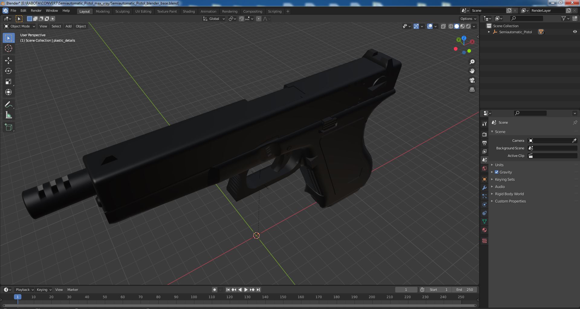 Semiautomatic Pistol is a high quality, photo real 3d model that will enhance detail and realism to any of your rendering projects. The model has a fully textured, detailed design that allows for close-up renders, and was originally modeled in 3ds Max 2020 and rendered with V-Ray. Renders have no postprocessing!