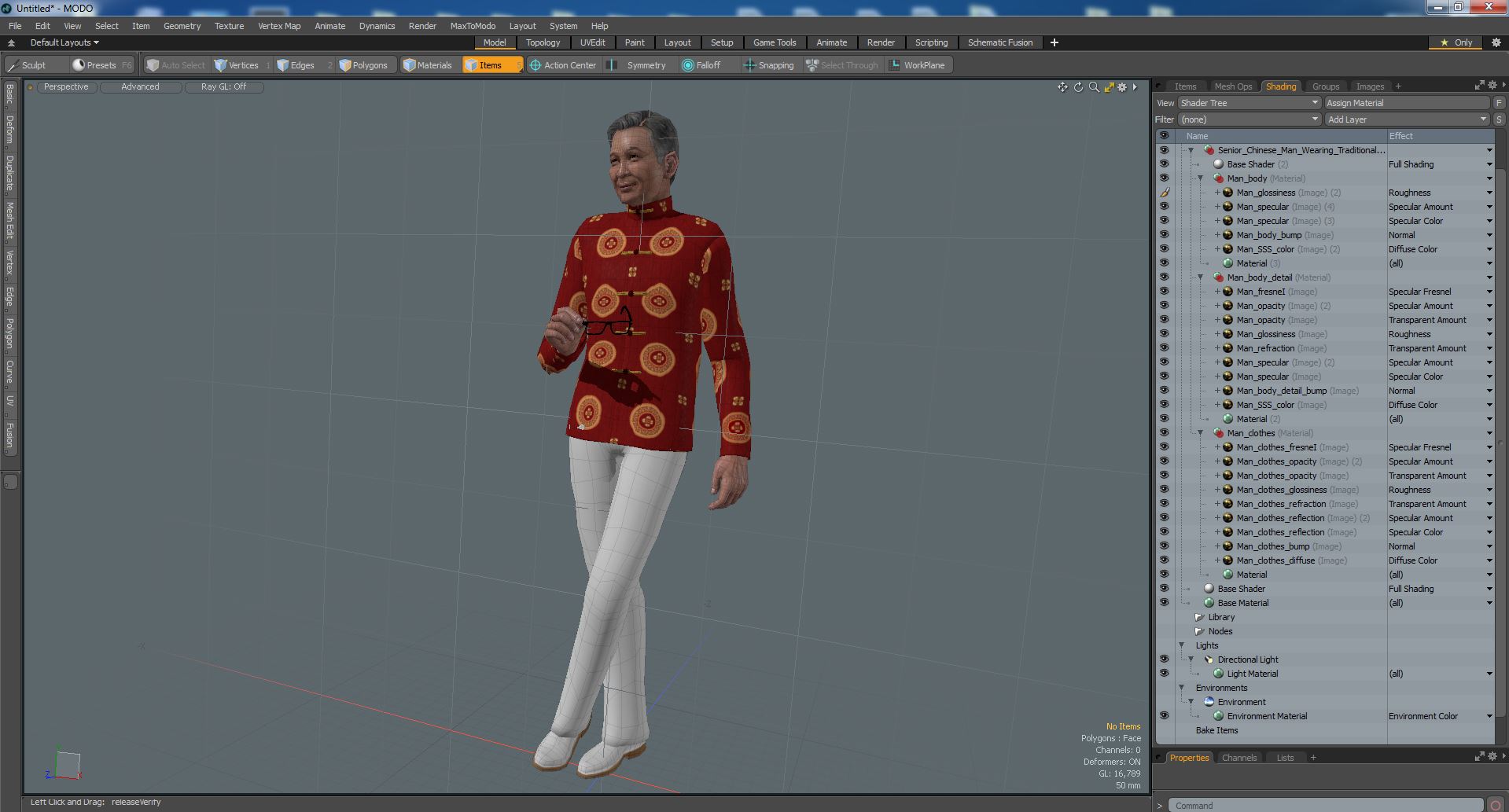 Senior Chinese Man Wearing Traditional Clothing is a three-dimensional model of Chinese elderly (old age) male person in national, traditional apparel.