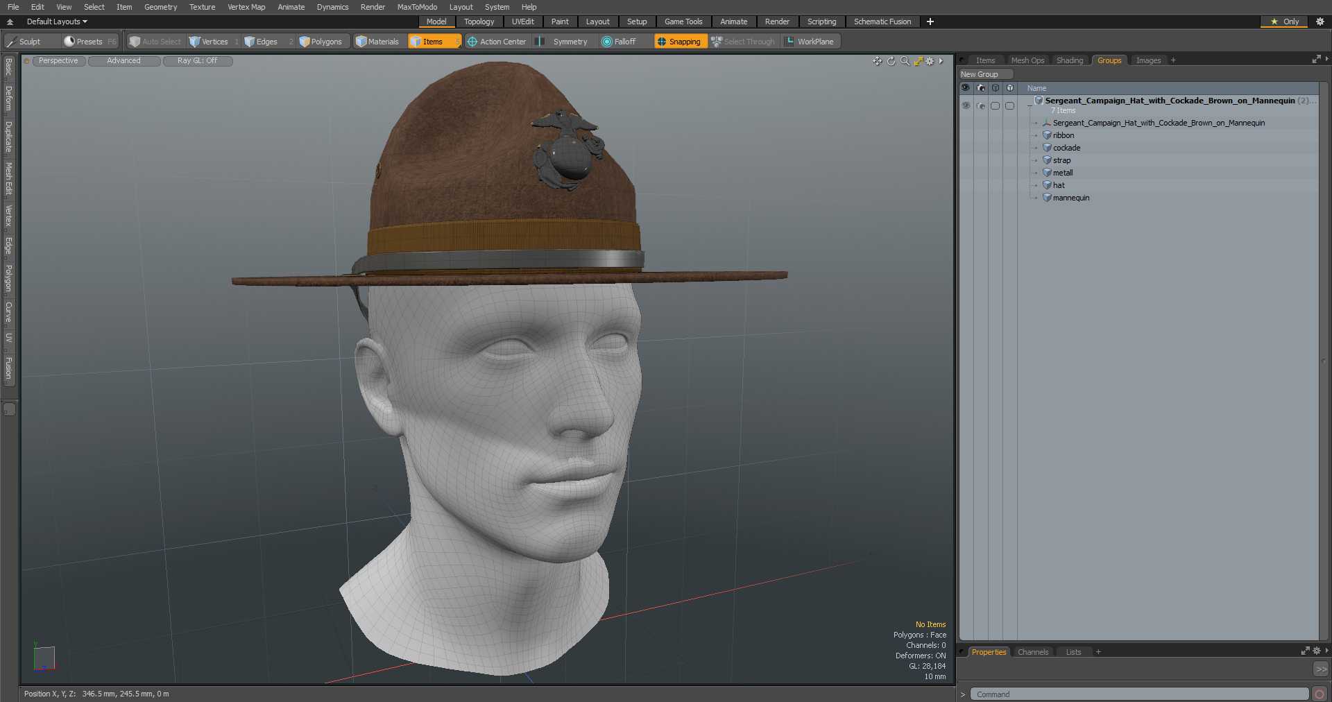 Sergeant Campaign Hat with Cockade Brown on Mannequin is a 3d model of type of hat worn by drill instructors and military officers in certain branches of the armed forces, such as the United States Army.
