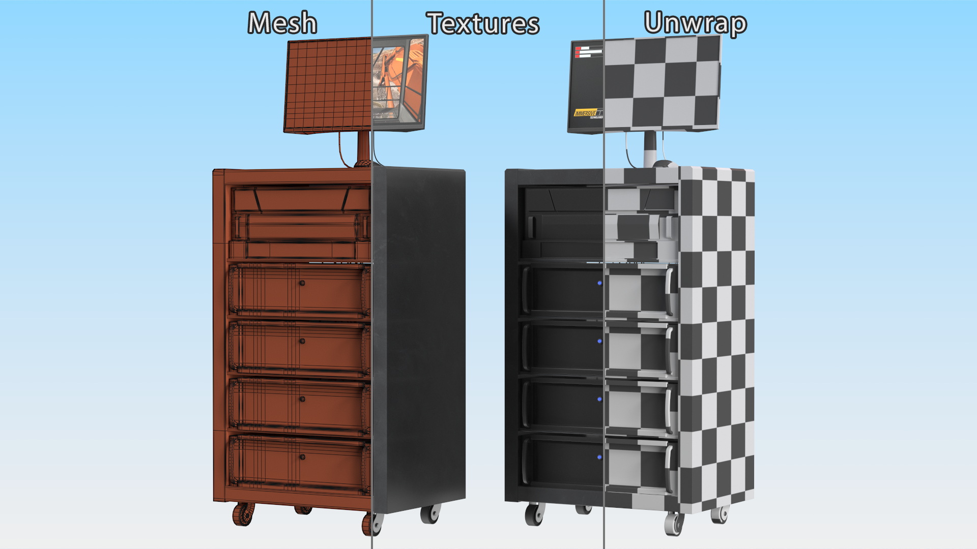 Server Rack with Computer and Monitor is a 3d model of a data center setup, featuring a server rack with integrated computer hardware and an attached monitor for system management and monitoring.