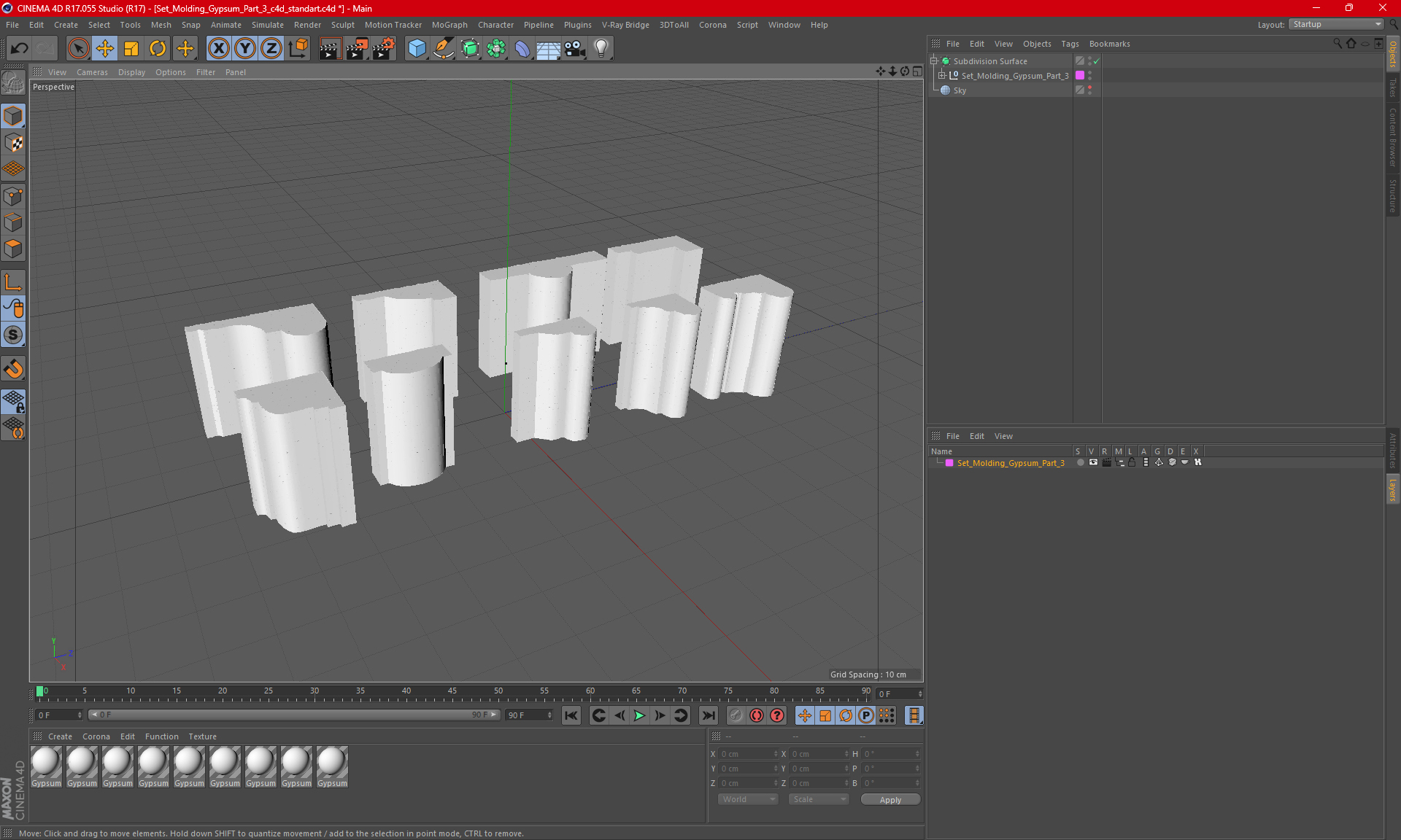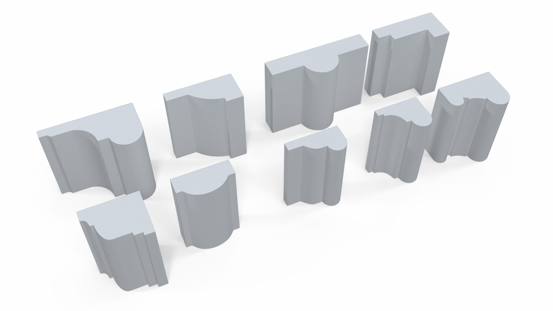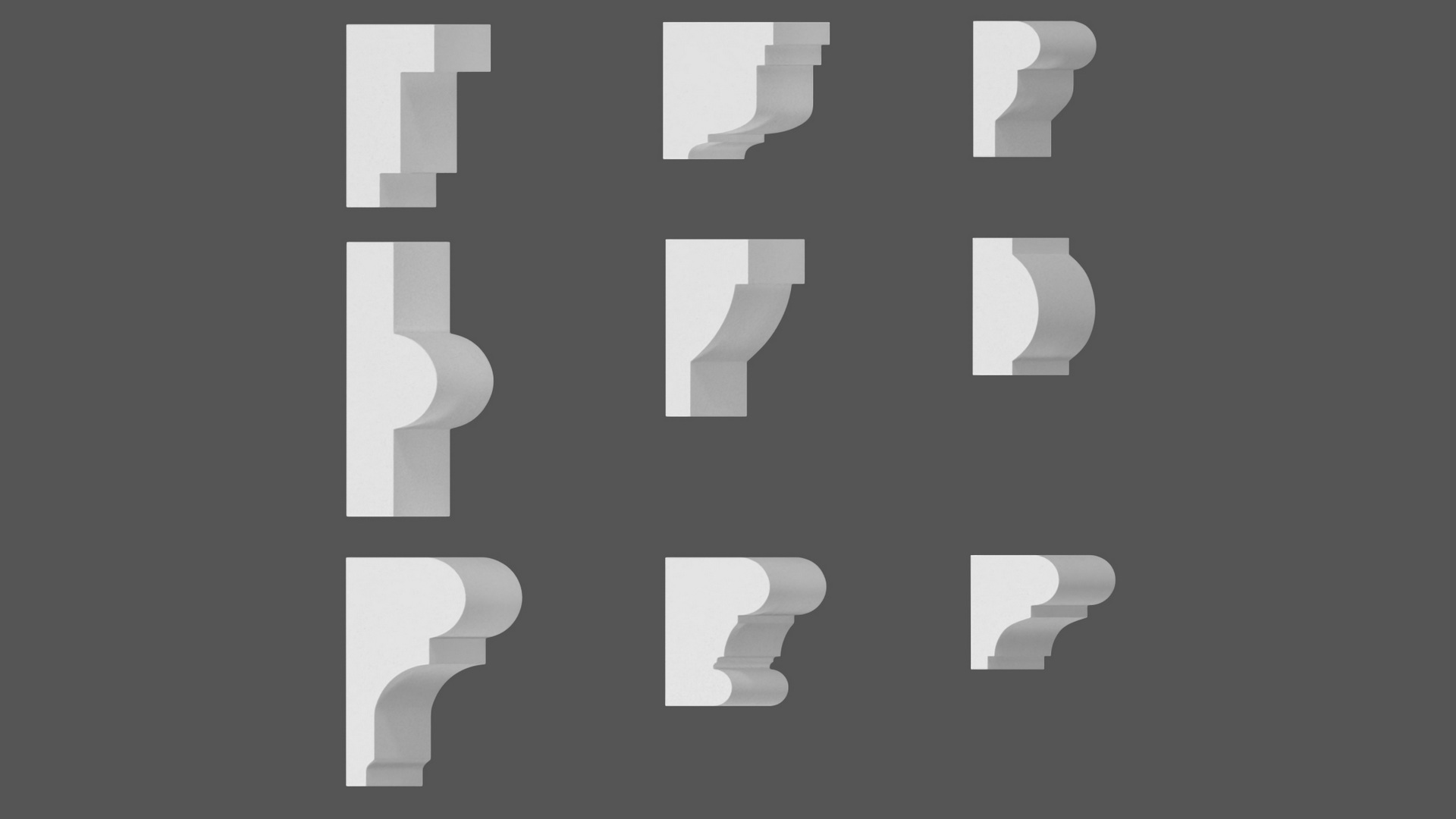 Set Molding Gypsum Part 3 is a three-dimensional model of collection of architectural molding gypsum stucco items that are decorative fretwork components, and that are elements of decoration of buildings, columns, interior spaces, etc..