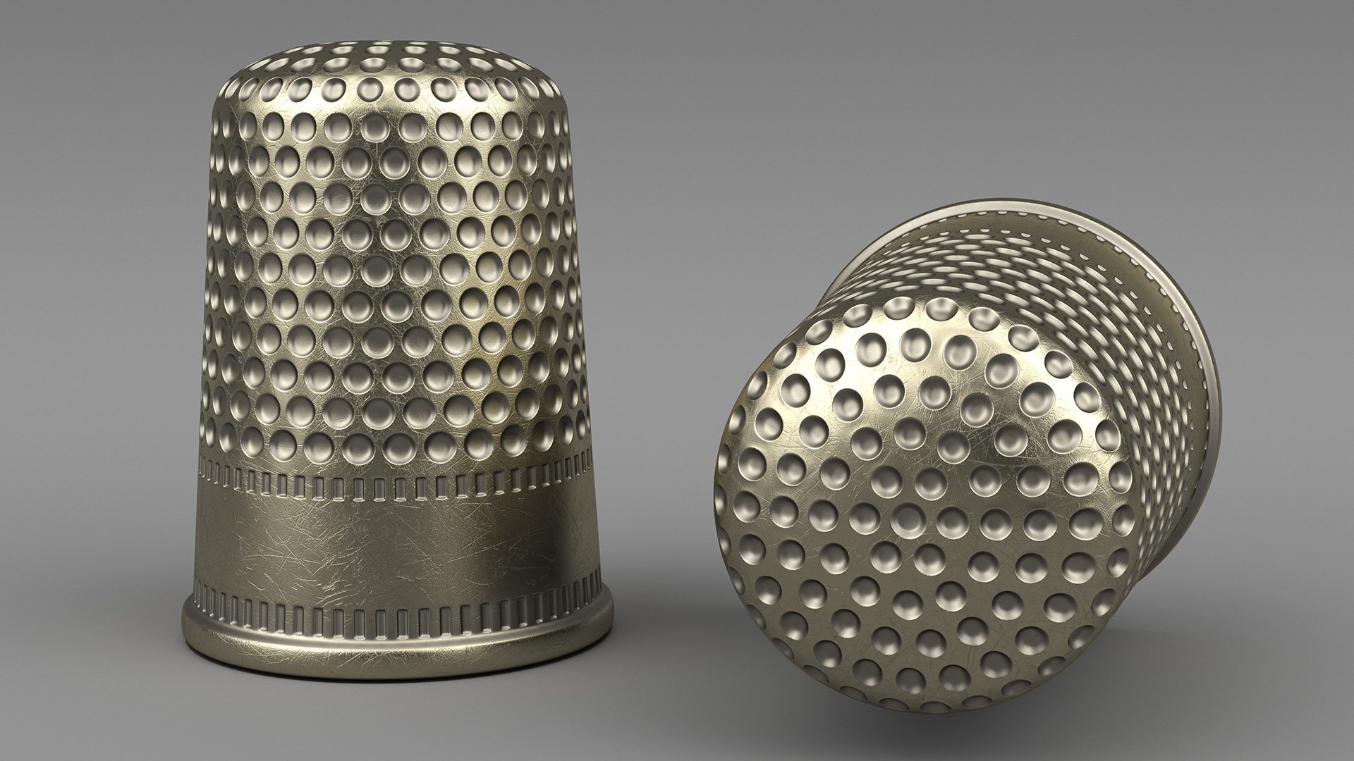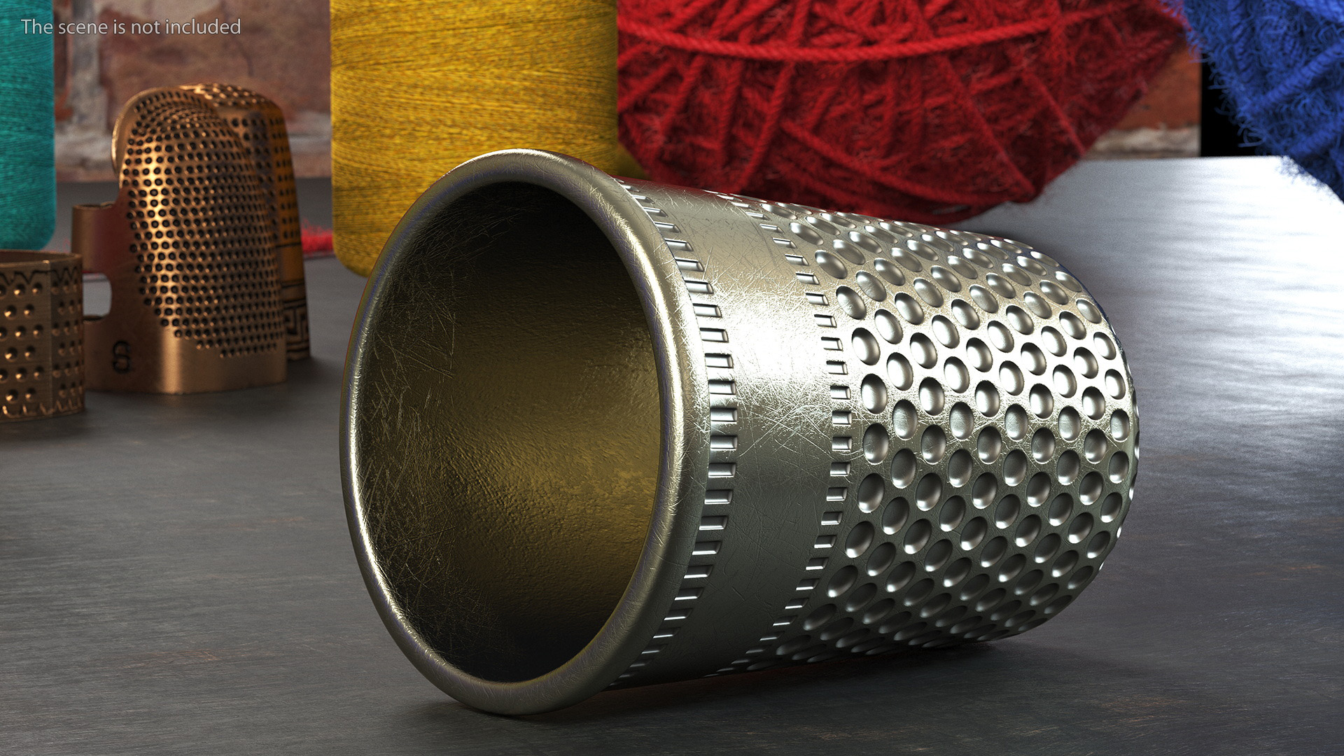 Sewing Thimble is a high quality, photo real 3d model that will enhance detail and realism to any of your rendering projects. The model has a fully textured, detailed design that allows for close-up renders, and was originally modeled in 3ds Max 2020 and rendered with V-Ray. Renders have no postprocessing!