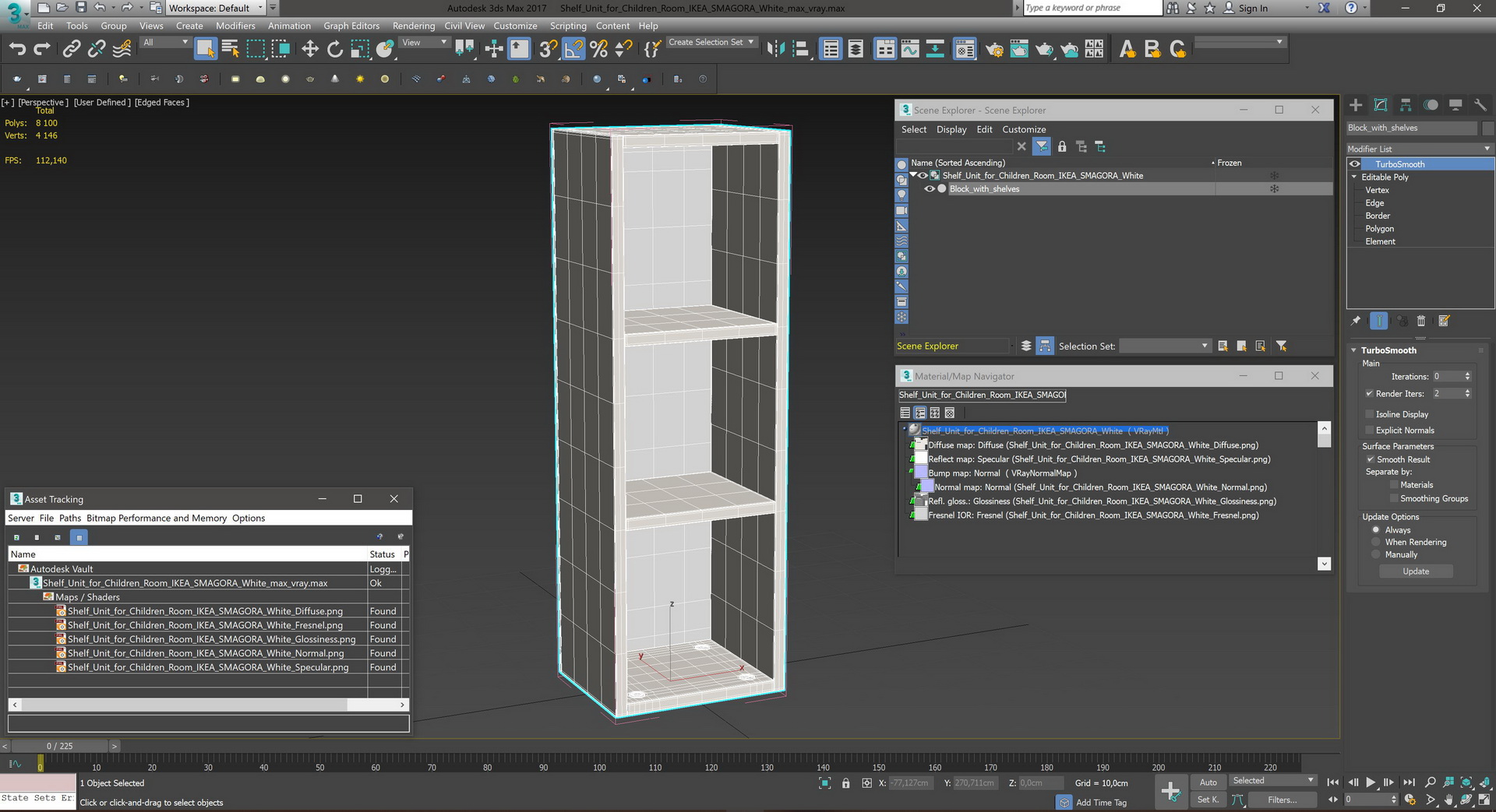 Shelf Unit for Children Room IKEA SMAGORA White is a high quality, photo real 3d model that will enhance detail and realism to any of your rendering projects. The model has a fully textured, detailed design that allows for close-up renders, and was originally modeled in 3ds Max 2020 and rendered with V-Ray. Renders have no postprocessing!