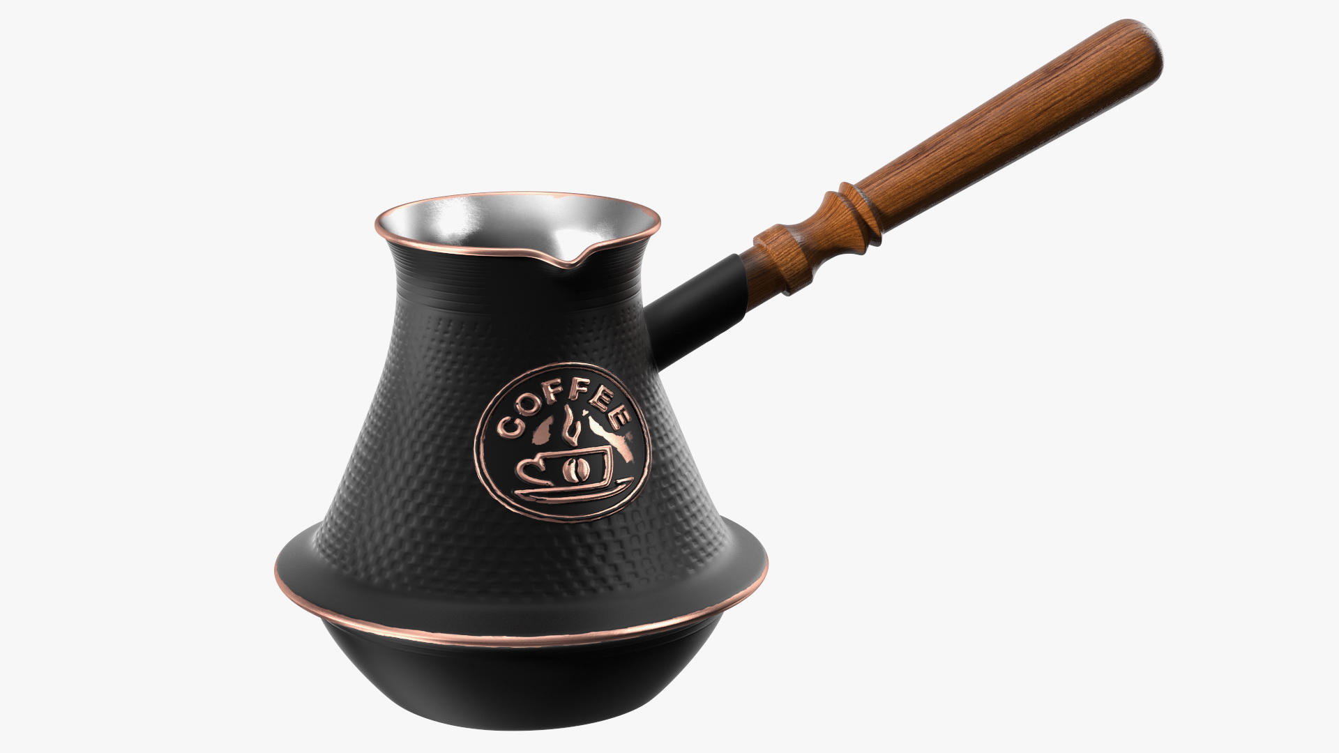 Shelf With Kitchenware Brick Wall is a three-dimensional model of a kitchen wall mounted furniture with teapots, cups, saucers, wineglasses, vintage tea tin (tea container) and Turkish coffee pot.