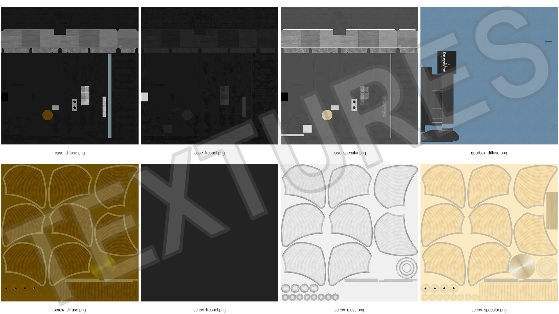 All textures and materials are included and mapped. (All colors can be easily modified.)