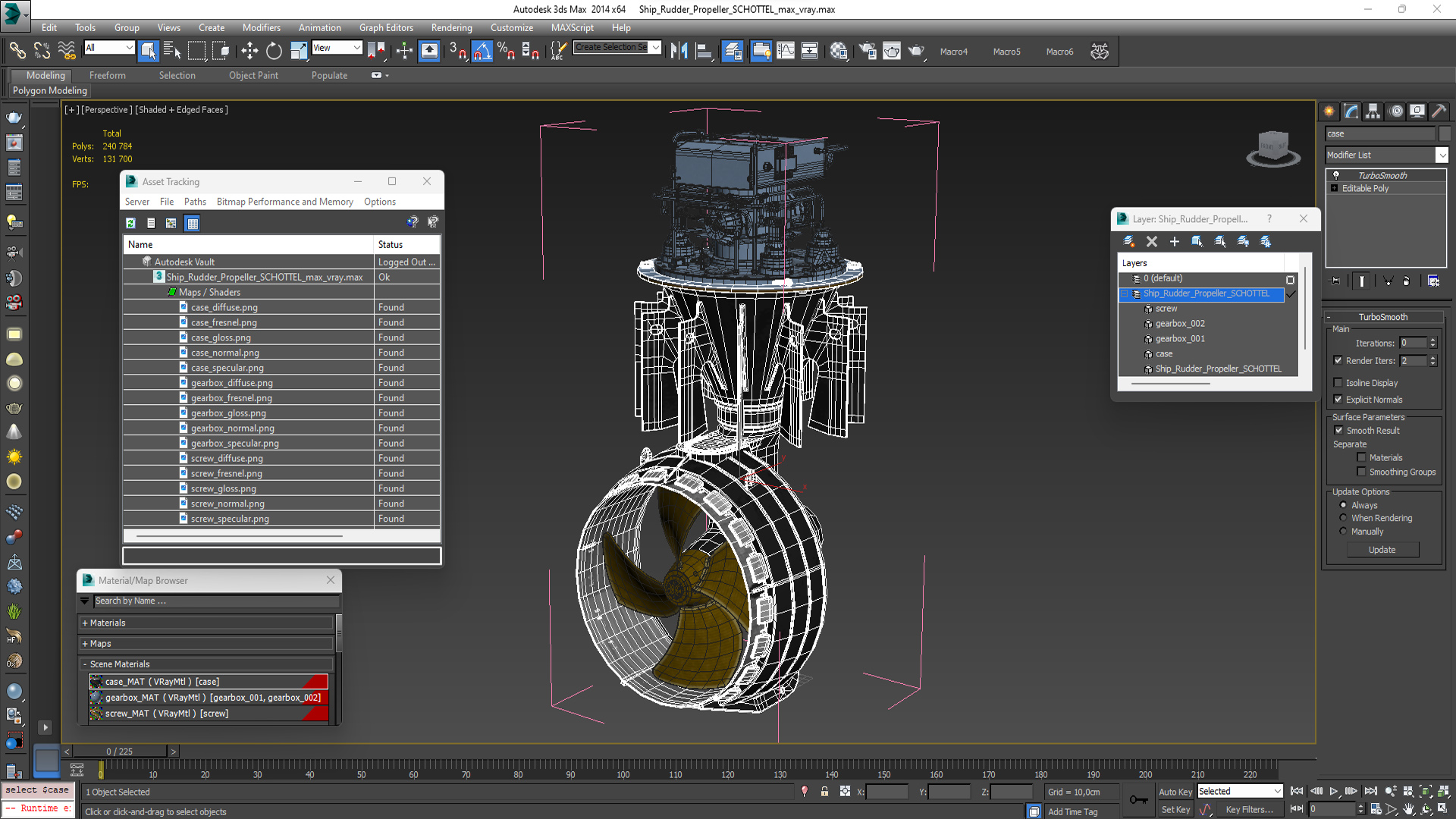 Ship Rudder Propeller SCHOTTEL is a high quality, photo real 3d model that will enhance detail and realism to any of your rendering projects. The model has a fully textured, detailed design that allows for close-up renders, and was originally modeled in 3ds Max 2020 and rendered with V-Ray. Renders have no postprocessing!