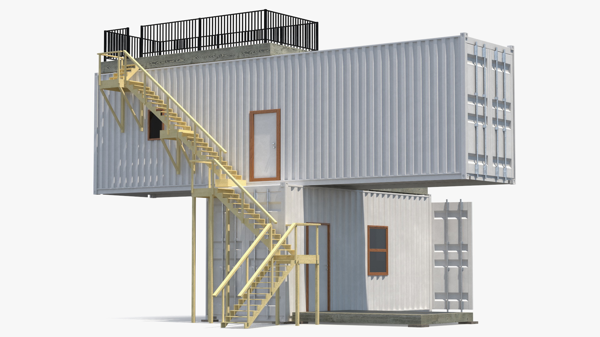 Shipping Container House Building is a three-dimensional model of container home which is a dwelling constructed from repurposed shipping containers. Made from steel, such containers are versatile building blocks for sustainable housing solutions. They can be stacked or arranged in various configurations to create functional living spaces. Container homes offer affordability, durability, and eco-friendliness, making them a popular choice for those seeking innovative housing options.