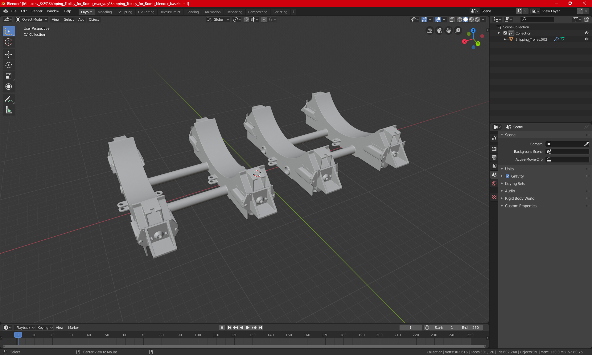 Shipping Trolley for Bomb is a 3d model of a specialized transport trolley designed for securely moving bombs or hazardous materials.